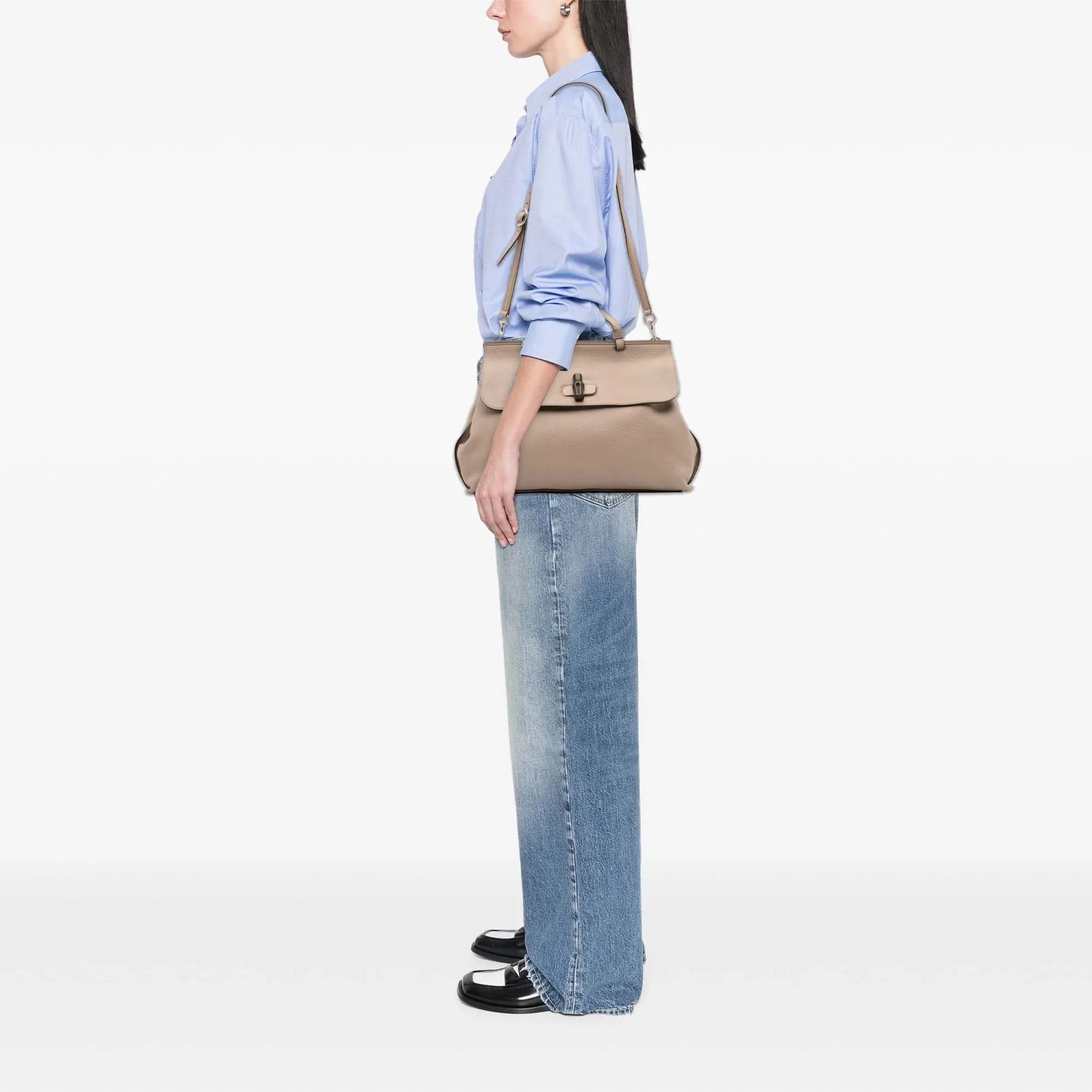 Brown Gucci Large Leather Bamboo Daily Satchel