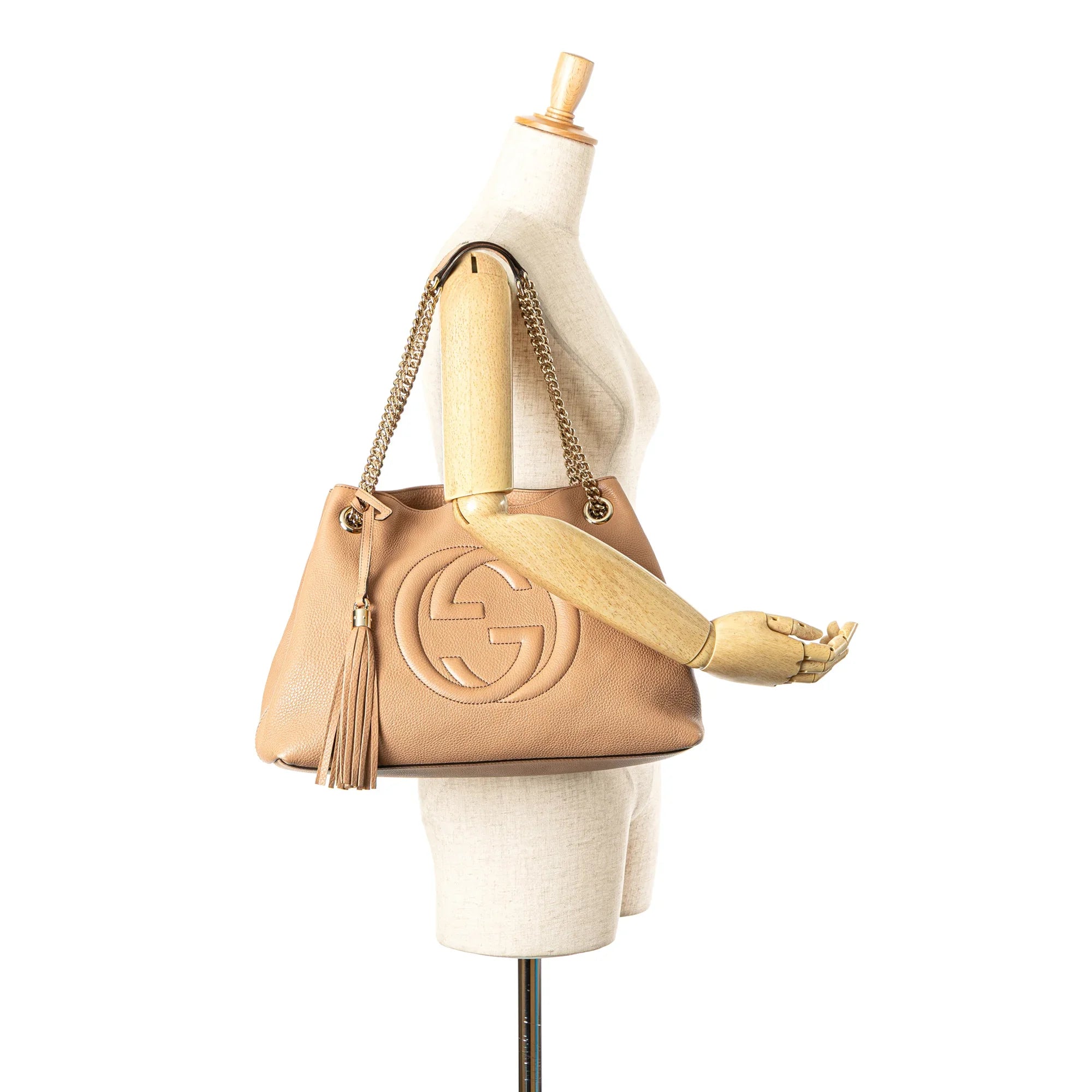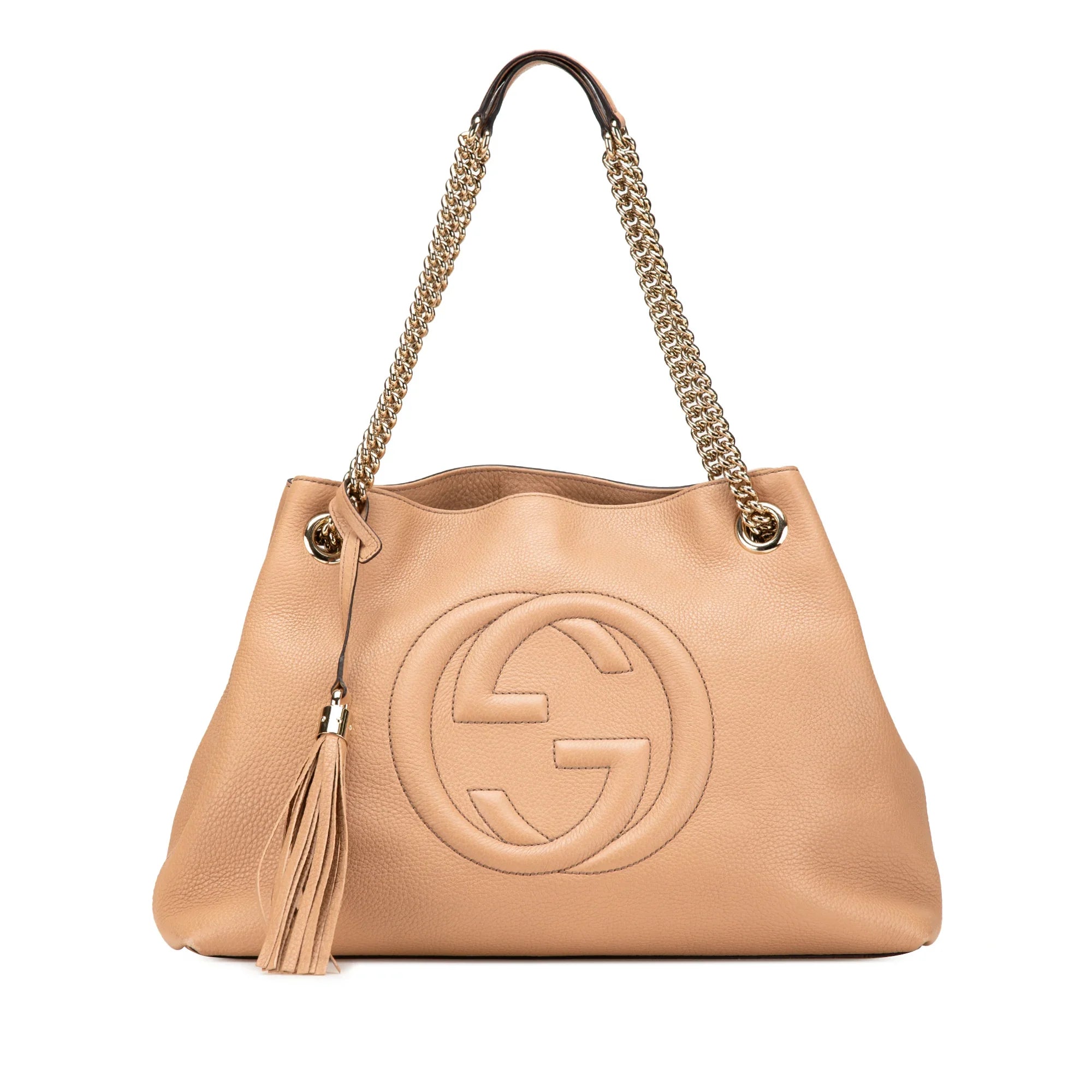 Please note this is a pre-owned item that may display signs of wear consistent with the condition listed above and shown in photos. Designer Revival guarantees this is an authentic Brown Gucci Medium Leather Soho Chain Tote or 100% of your money back. Learn more about our authentication process.