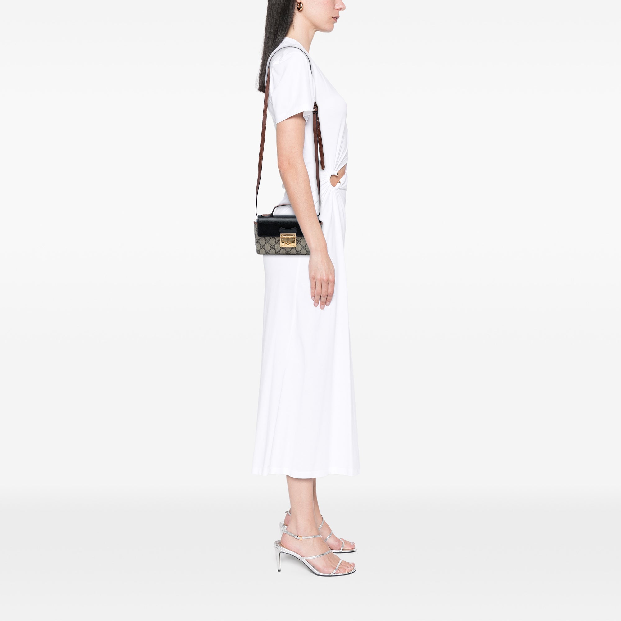 Brown Gucci Mini GG Supreme Padlock Satchel