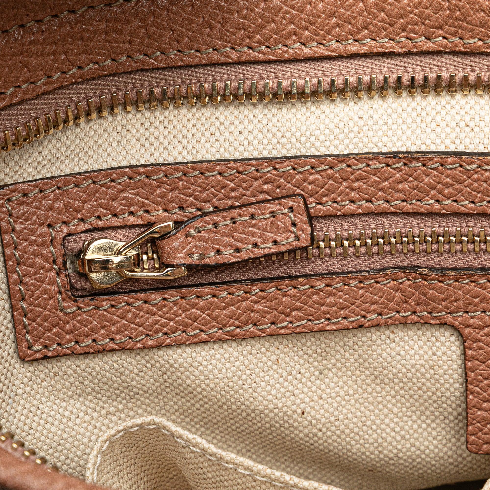 Please note this is a pre-owned item that may display signs of wear consistent with the condition listed above and shown in photos. Designer Revival guarantees this is an authentic Brown Gucci Small GG Canvas Bree Satchel or 100% of your money back. Learn more about our authentication process.