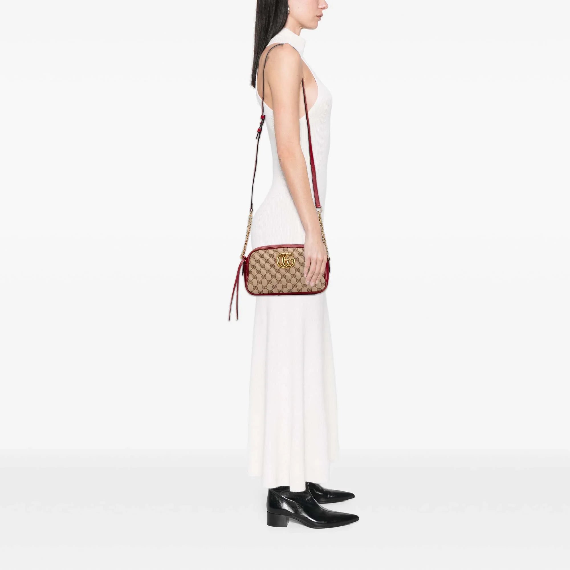 Brown Gucci Small GG Marmont Matelasse Canvas Crossbody