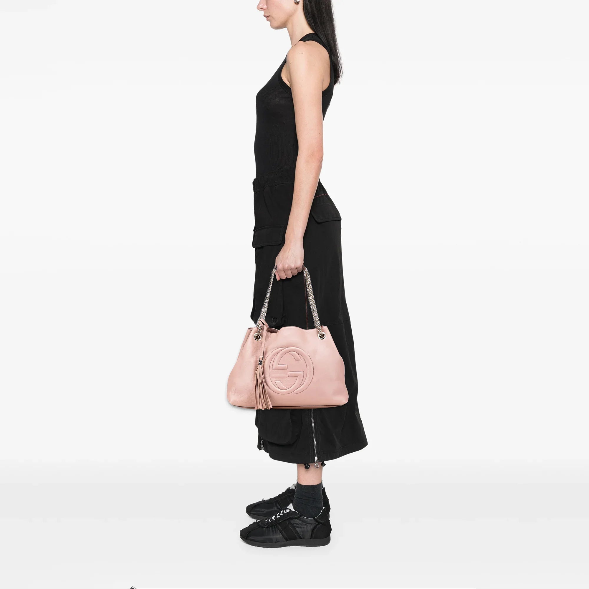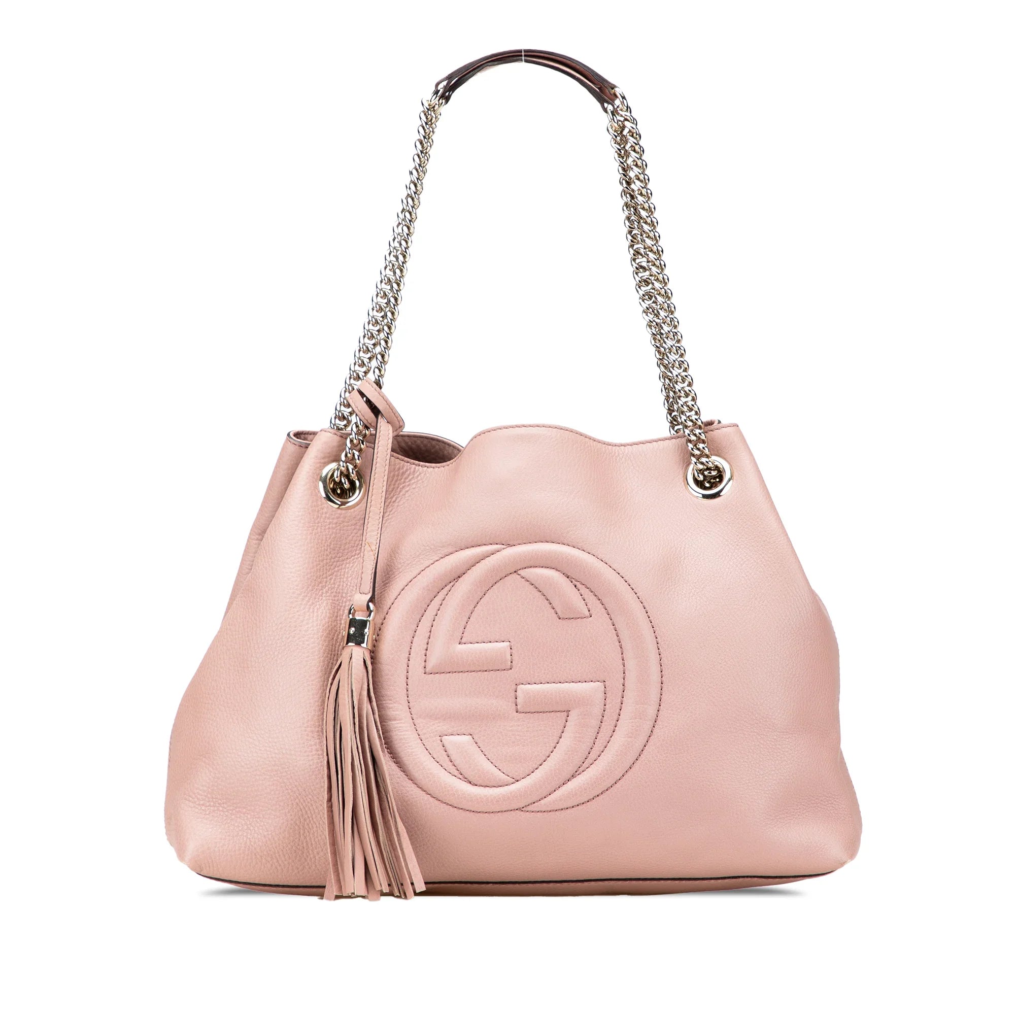 Please note this is a pre-owned item that may display signs of wear consistent with the condition listed above and shown in photos. Designer Revival guarantees this is an authentic Pink Gucci Medium Leather Soho Chain Tote or 100% of your money back. Learn more about our authentication process.
