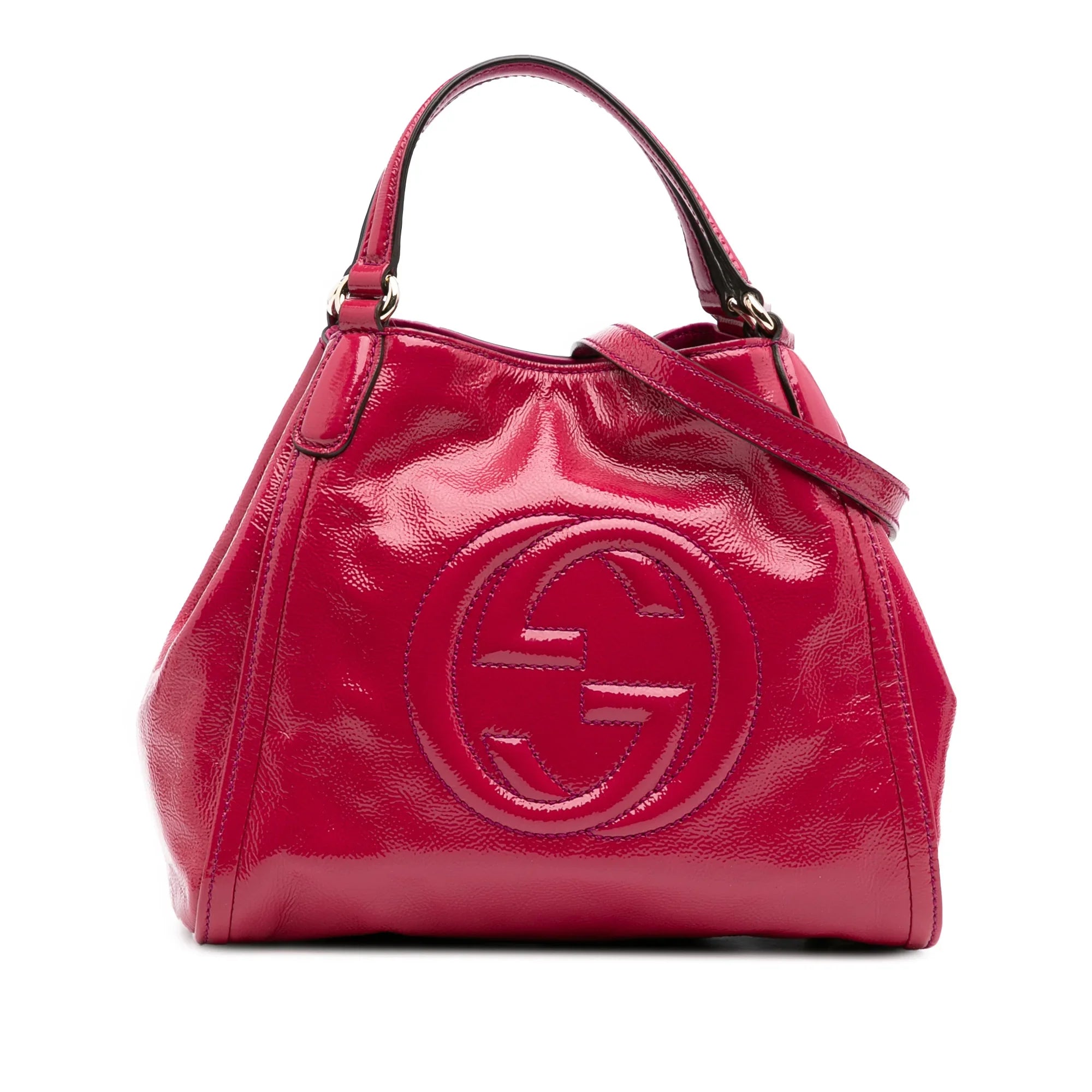 Pink Gucci Small Patent Soho Satchel - Designer Revival Pink Gucci Small Patent Soho Satchel - Designer Revival