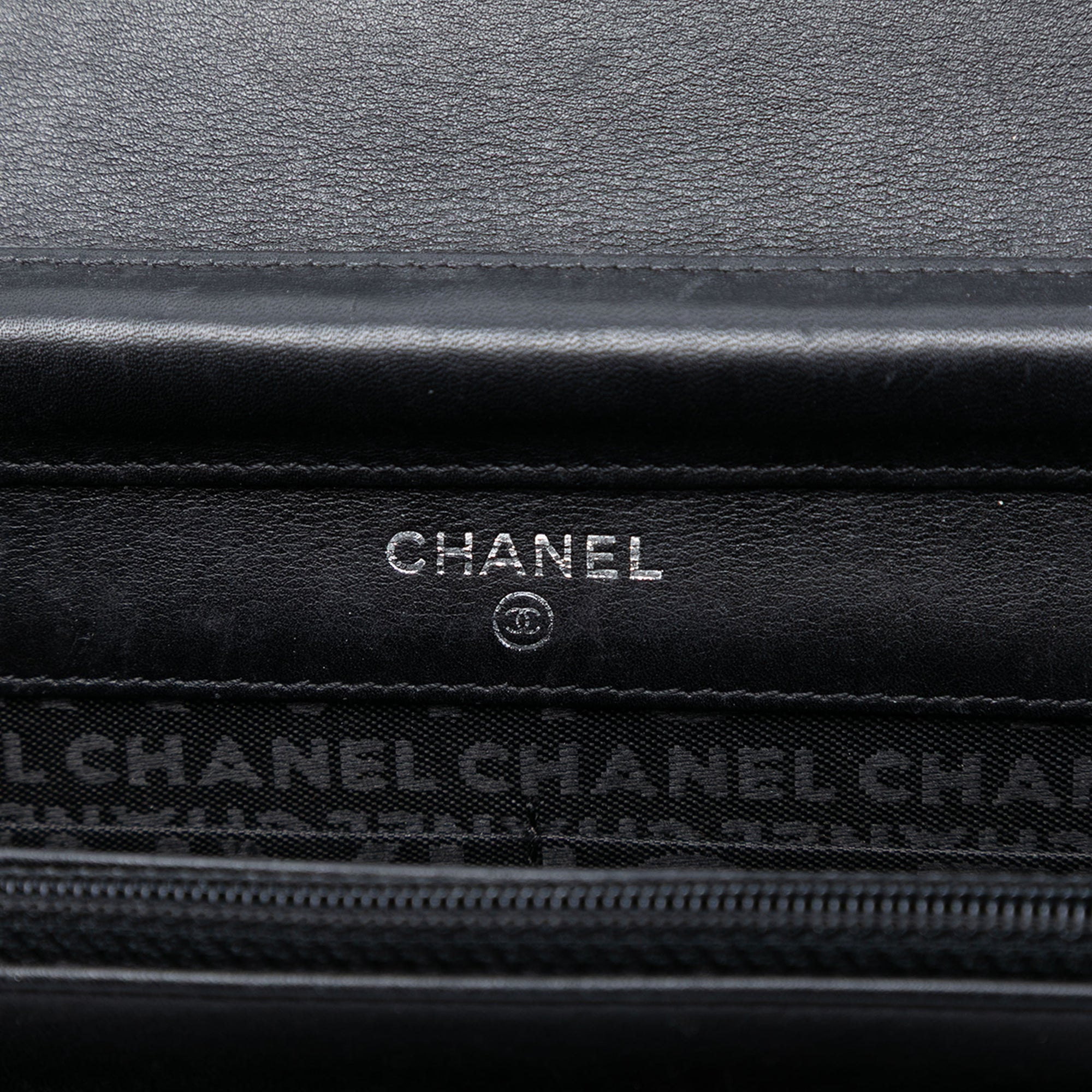 Black Chanel Quilted Lambskin Embossed LAX Wallet On Chain Crossbody Bag
