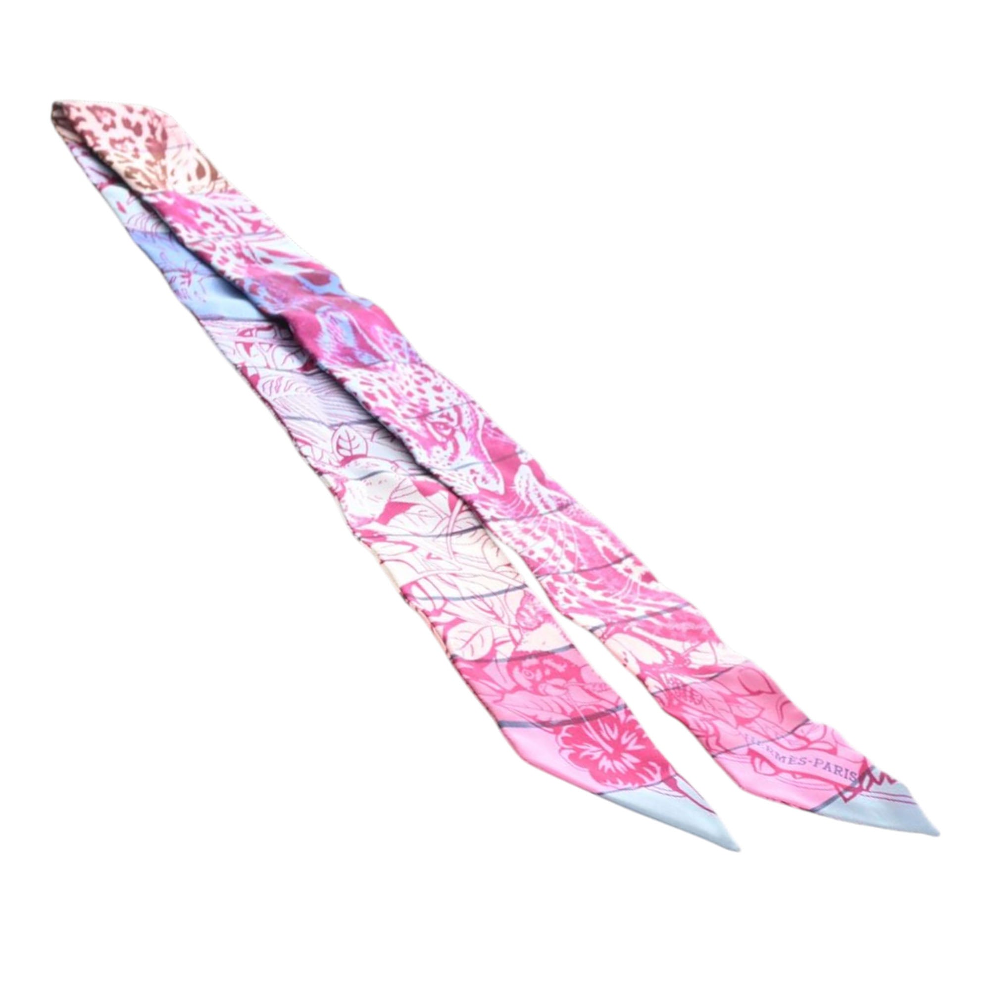 Pink Hermès Jungle Love Rainbow Silk Twilly Scarf Scarves