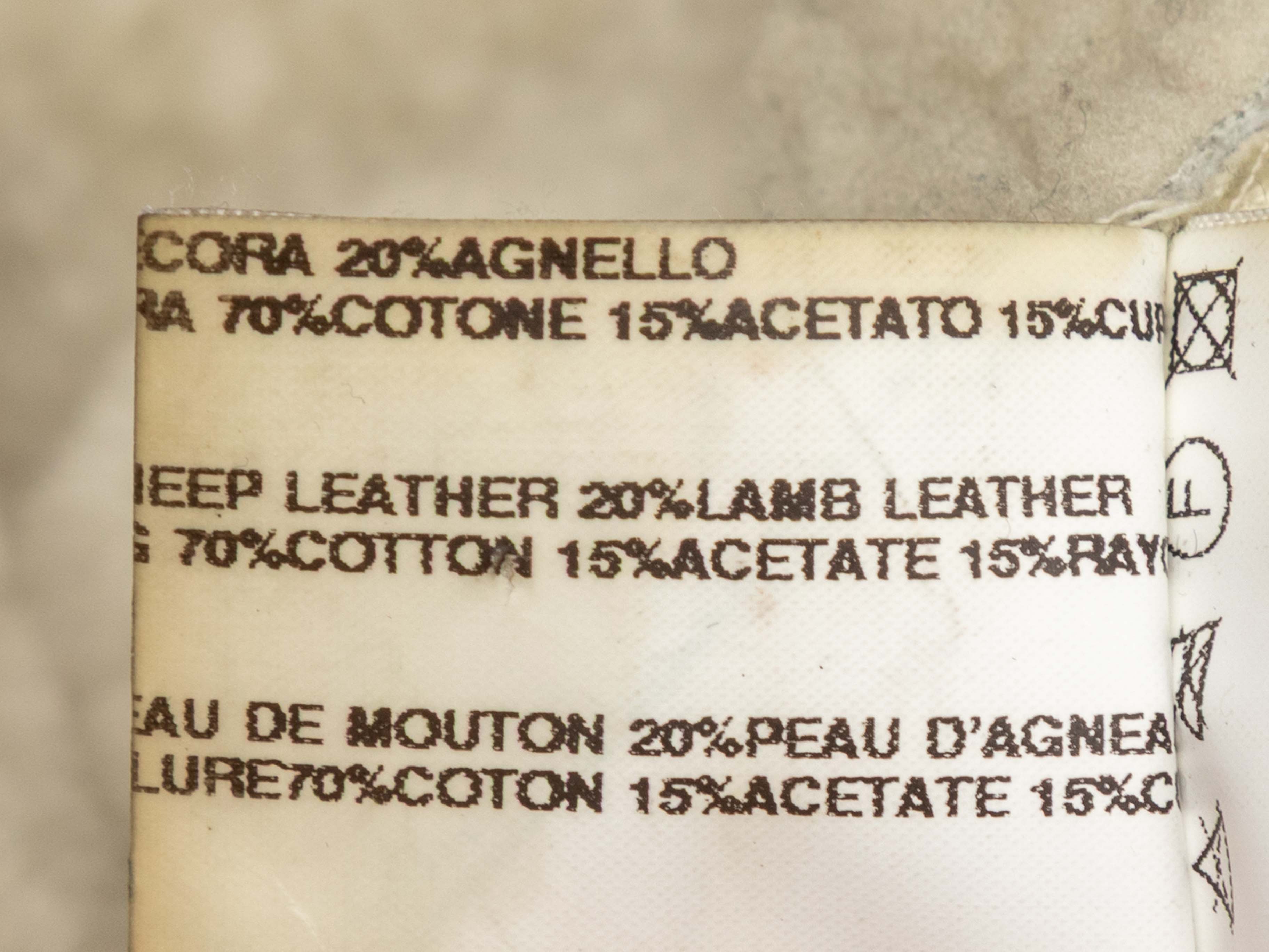 Condition: Pre-owned. Good. Pilling at interior shearling. Discoloration and wear throughout exterior. Minor marks at bottom left and back collar seam. General wear and use throughout.