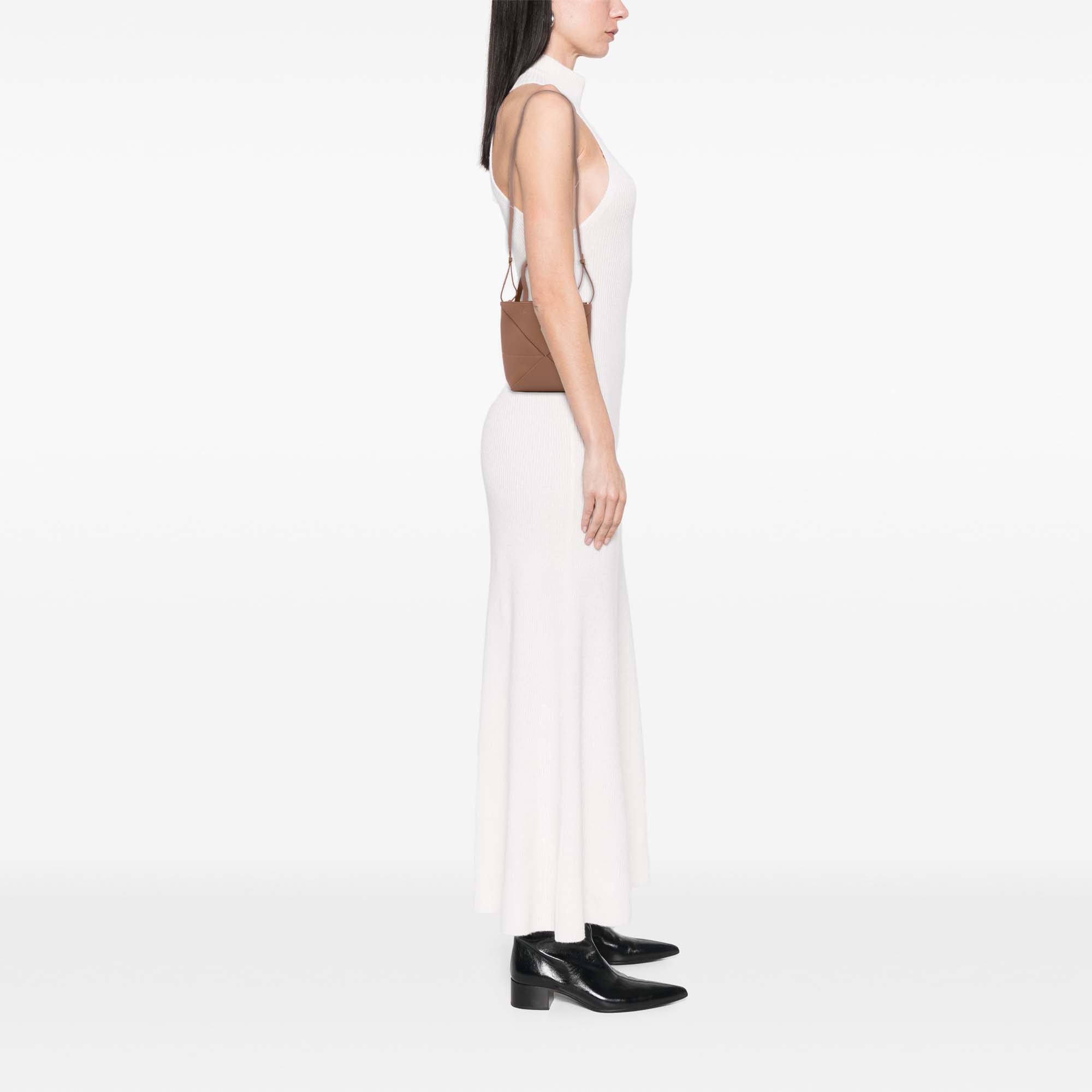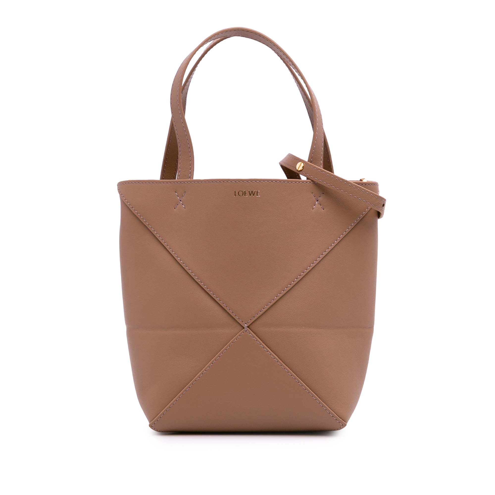 Brown LOEWE Mini Shiny Calfskin Puzzle Fold Tote Satchel