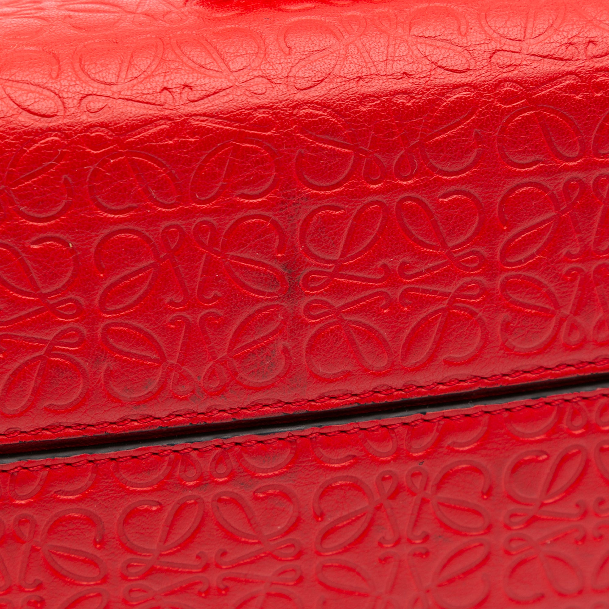 Red LOEWE Leather Repeat Anagram Avenue Crossbody - Designer Revival Red LOEWE Leather Repeat Anagram Avenue Crossbody - Designer Revival