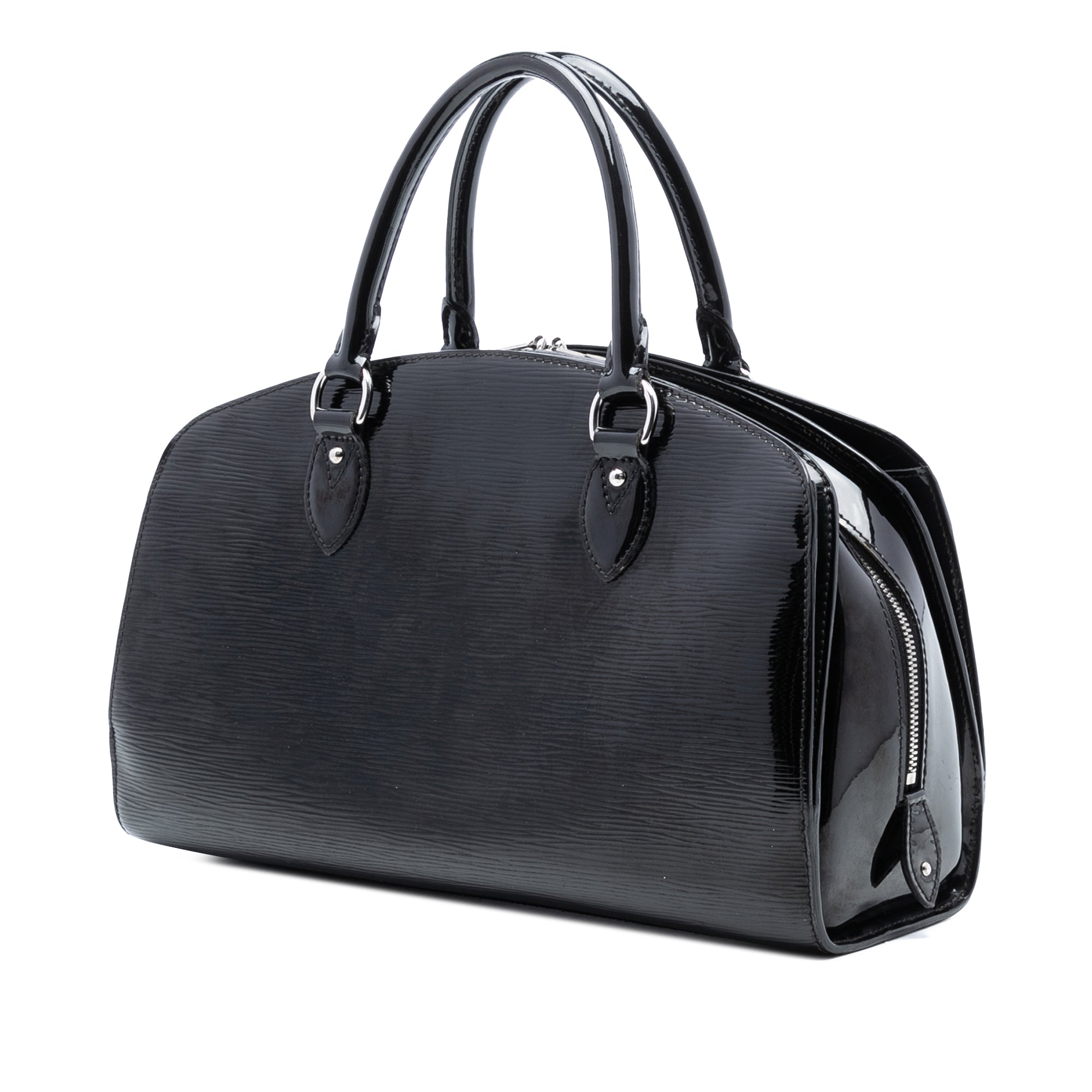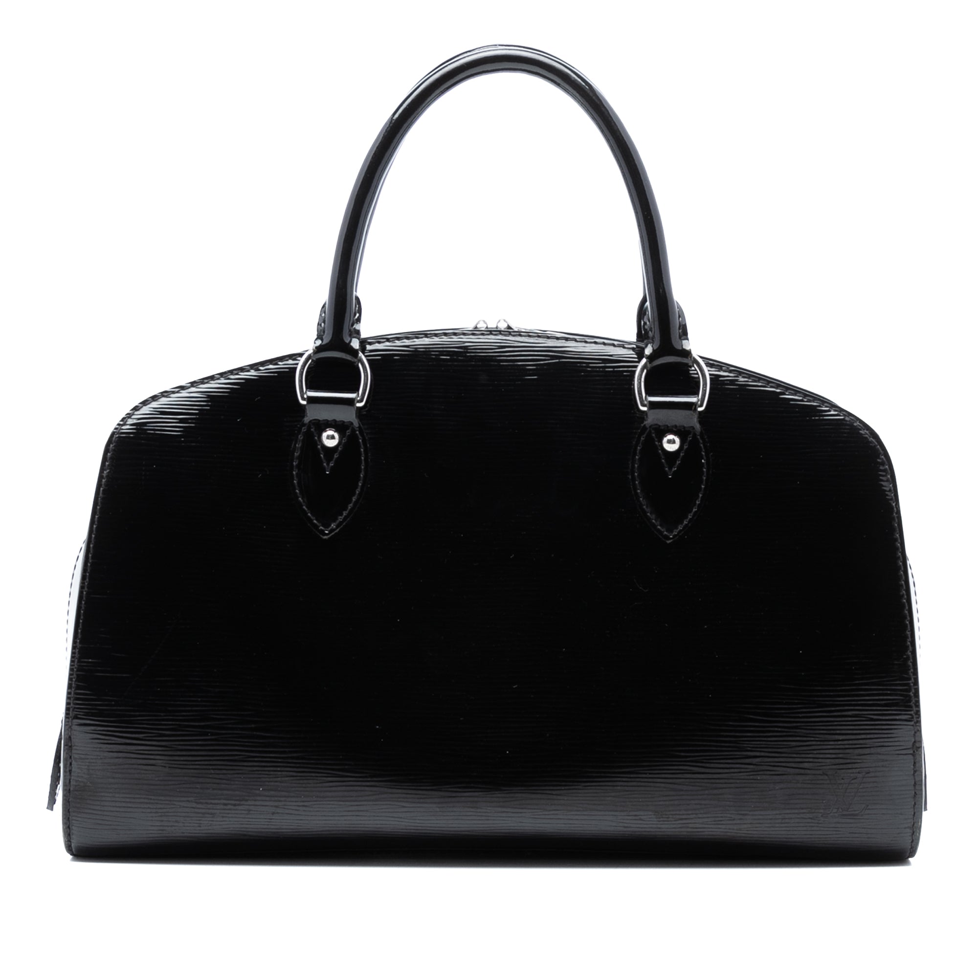 Product Details: Black Louis Vuitton Electric Epi Pont Neuf PM Handbag. The Pont Neuf PM features an epi leather body, rolled leather handles, and a top zip closure. 8.7" L x 13.8" W x 4.9" D, 4.7" drop. Serial number TR4120.