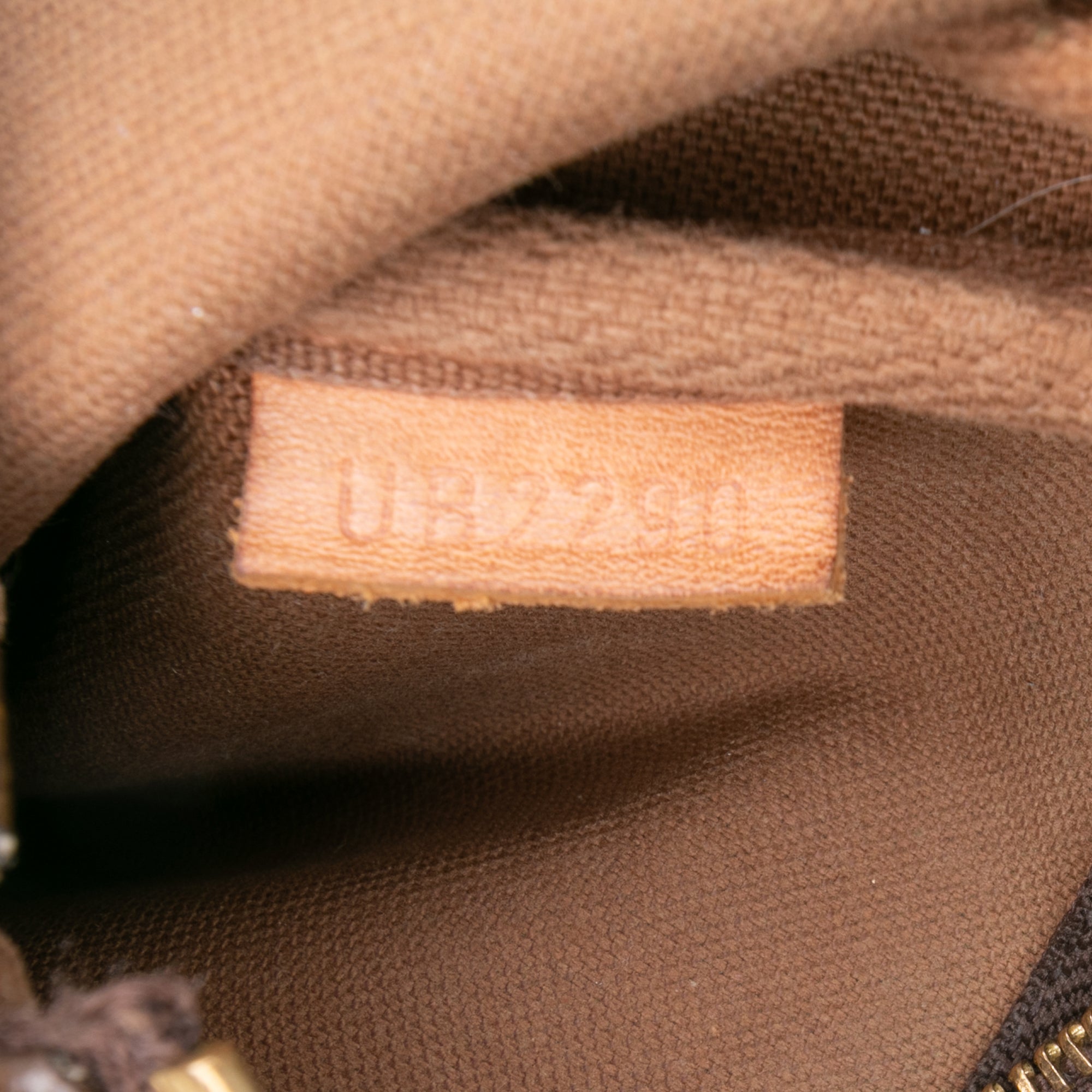 Product Details: Brown Louis Vuitton Monogram Mini Pochette Accessoires Handbag. The Mini Pochette Accessoires features a monogram canvas body, a gold-tone chain link handle, and a top zip closure. 3.5" L x 5.5" W x 1.2" D. Serial number UB2290.