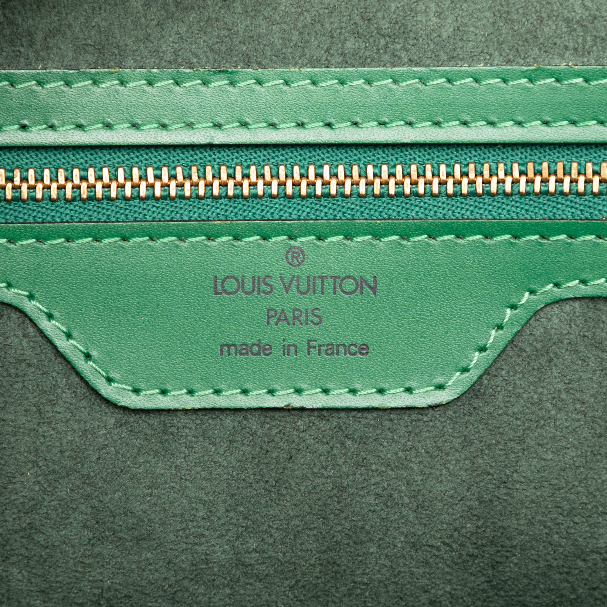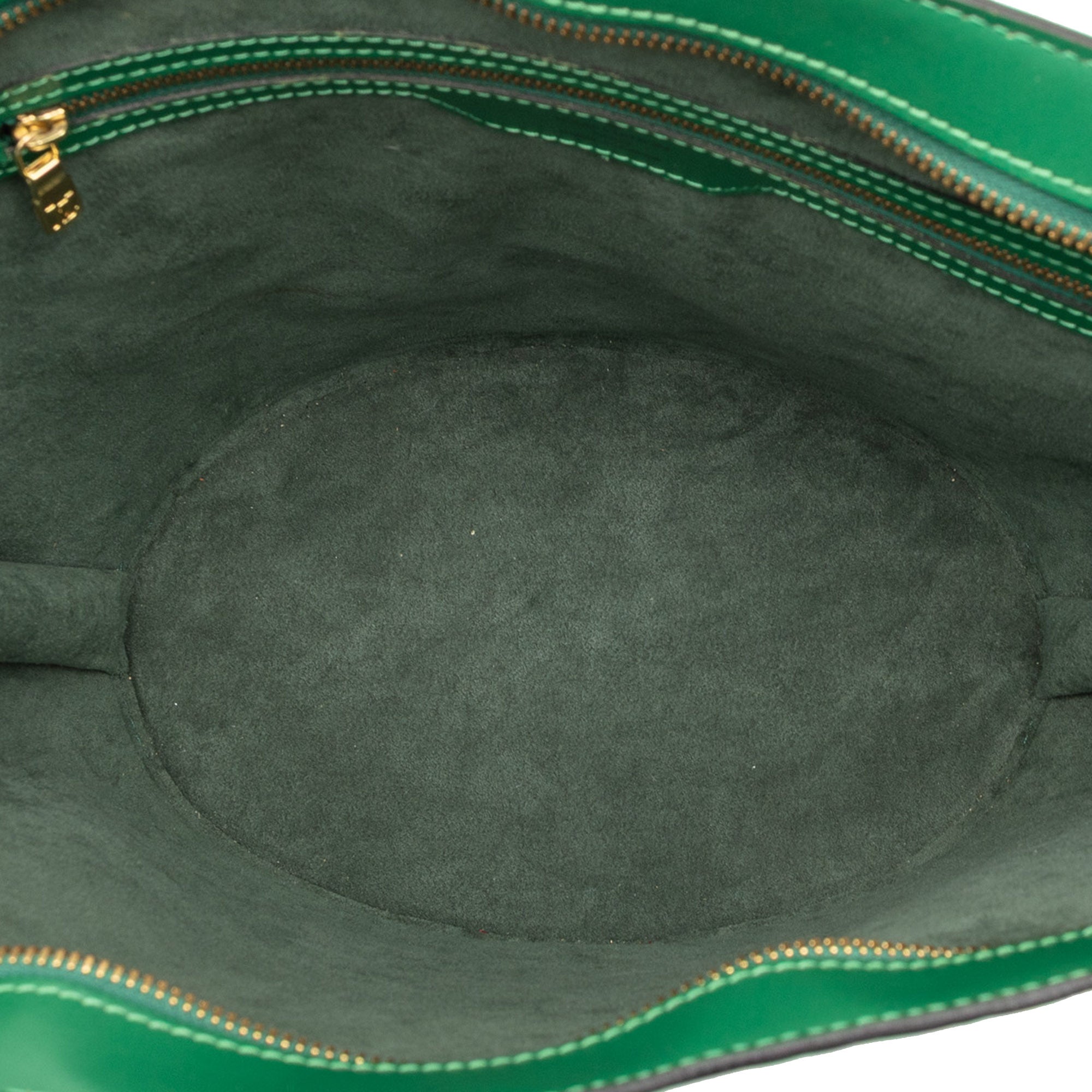 Product Details: Green Louis Vuitton Epi Saint Jacques GM Long Strap Shoulder Bag. The Saint Jacques GM features an epi leather body, flat straps, a top zip closure, and an interior zip pocket. 11.8" L x 10.2" W x 6.7" D. Serial number AS1905.