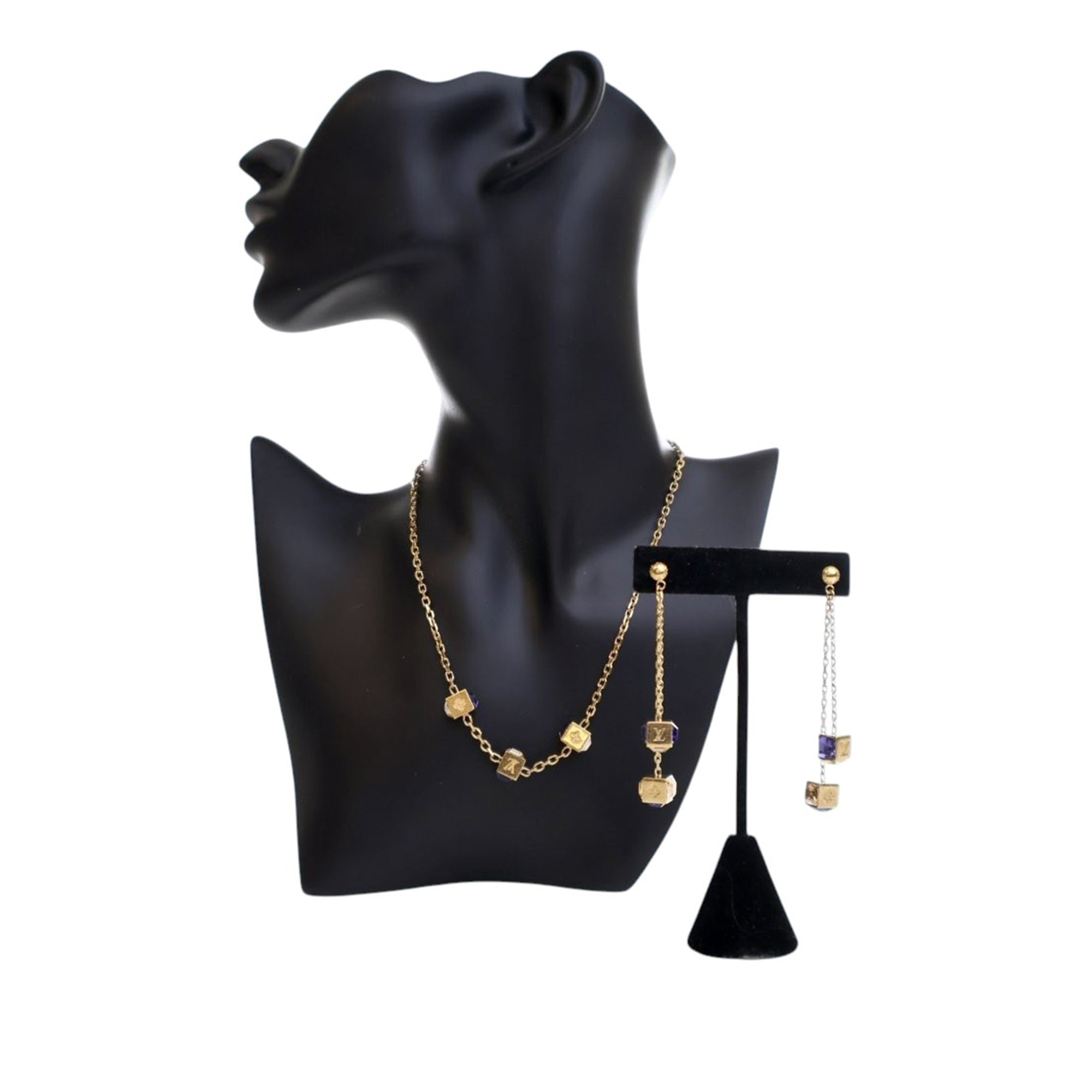 Please note this is a pre-owned item that may display signs of wear consistent with the condition listed above and shown in photos. Designer Revival guarantees this is an authentic Gold Louis Vuitton Gold Plated Crystal Gamble Drop Earrings And Necklace Set or 100% of your money back. Learn more about our authentication process.