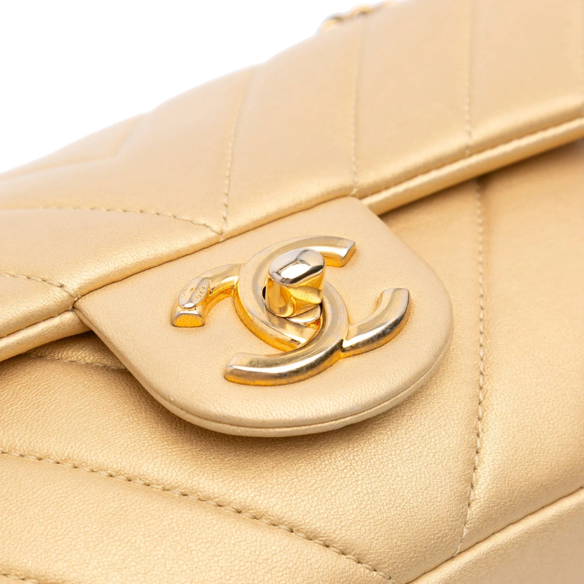 Gold Chanel Mini Quilted Chevron Lambskin Camera Case Flap Crossbody Bag - Designer Revival Gold Chanel Mini Quilted Chevron Lambskin Camera Case Flap Crossbody Bag - Designer Revival