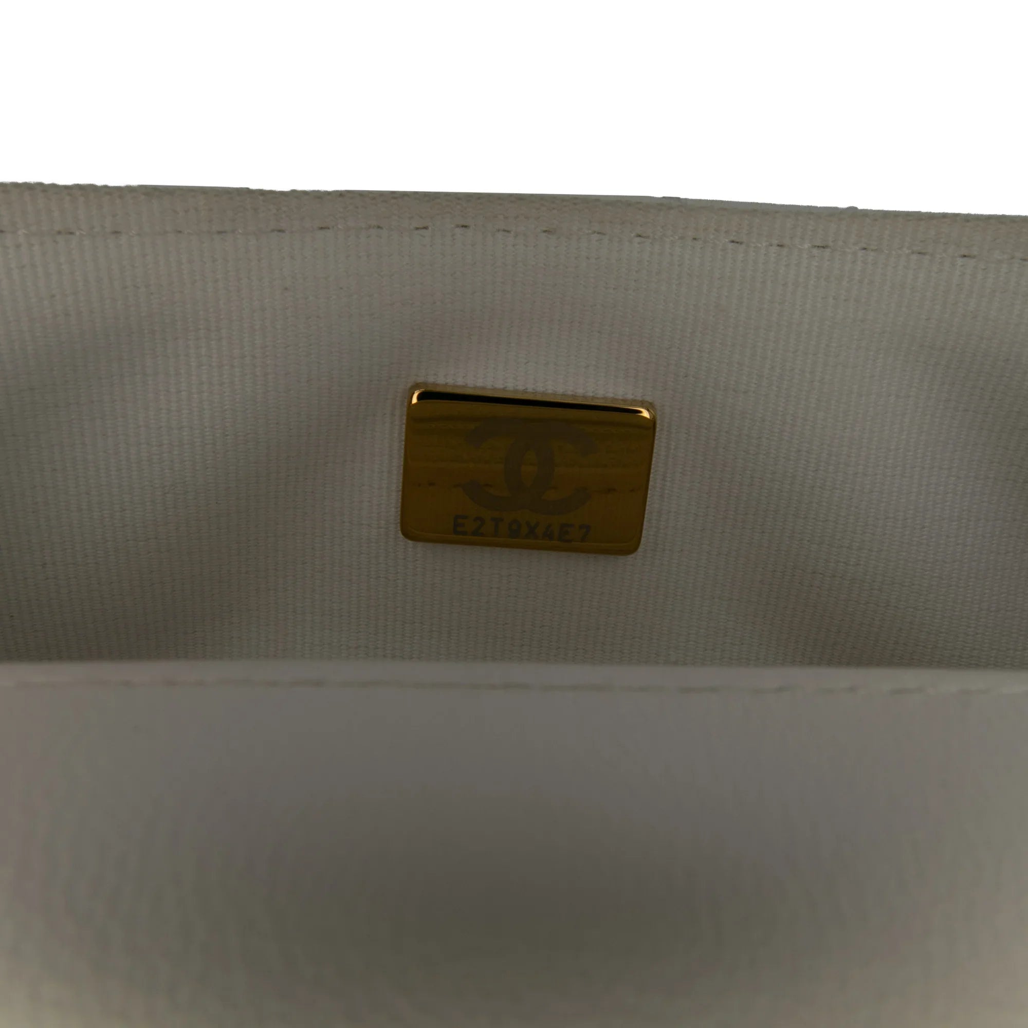 Product Details: White Chanel Mini Square Classic Lambskin Casino Royale Charms Single Flap Crossbody Bag. This flap features a quilted lambskin leather body, leather woven chain straps with charms, a front flap with twist lock closure, an exterior back slip pocket, and interior zip and slip pockets. 5.3" L x 6.3" W x 1.8" D. Serial number E2T9X4E7.