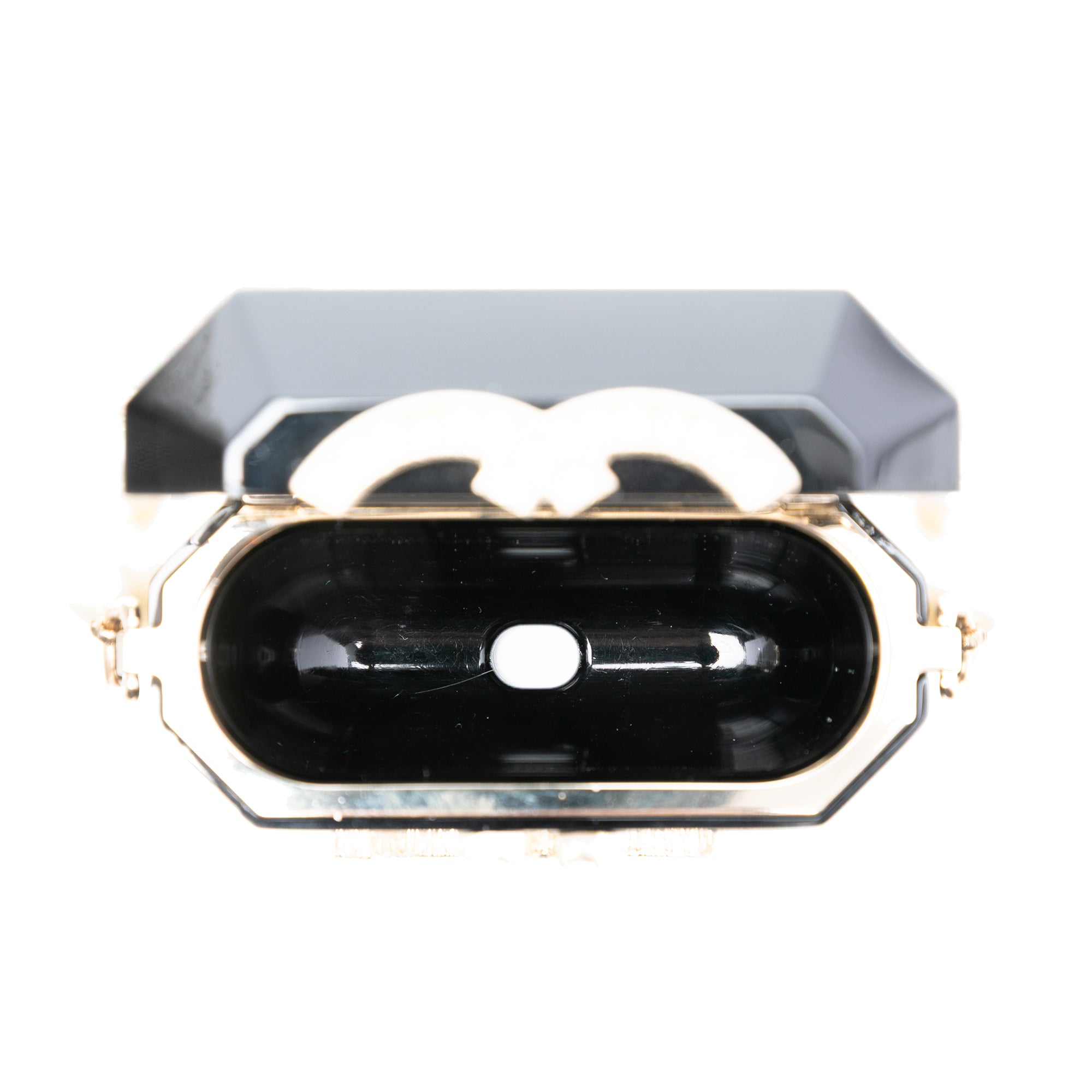 Black Chanel CC Resin and Faux Pearl Airpods Pro Case Necklace