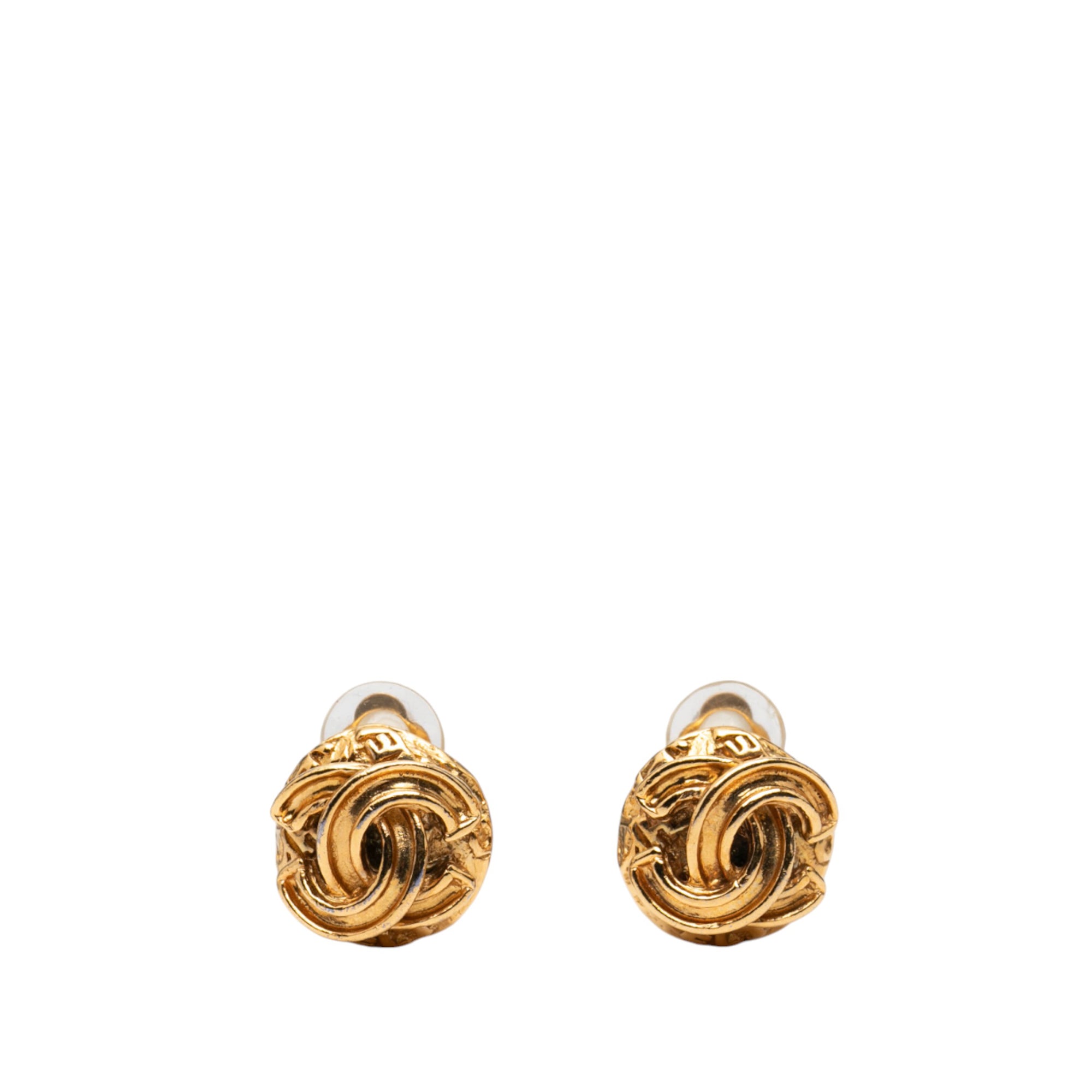 Product Details: Gold Chanel Gold Plated CC Round Clip On Earrings. These earrings feature a gold-plated metal body and clip on closures. 0.6" L x 0.6" W x 0" D. Serial number 95A.