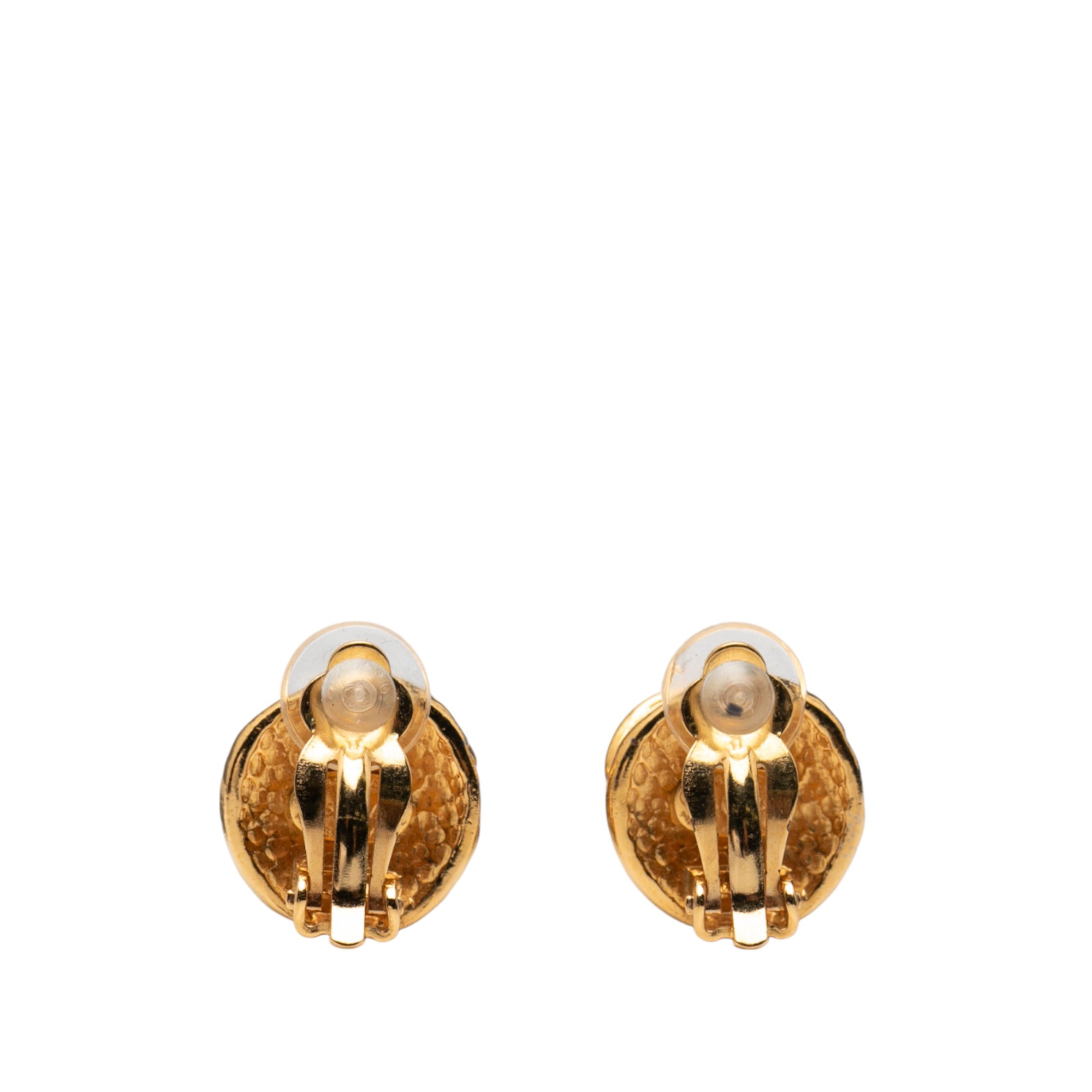 Gold Chanel Gold Plated CC Round Clip On Earrings