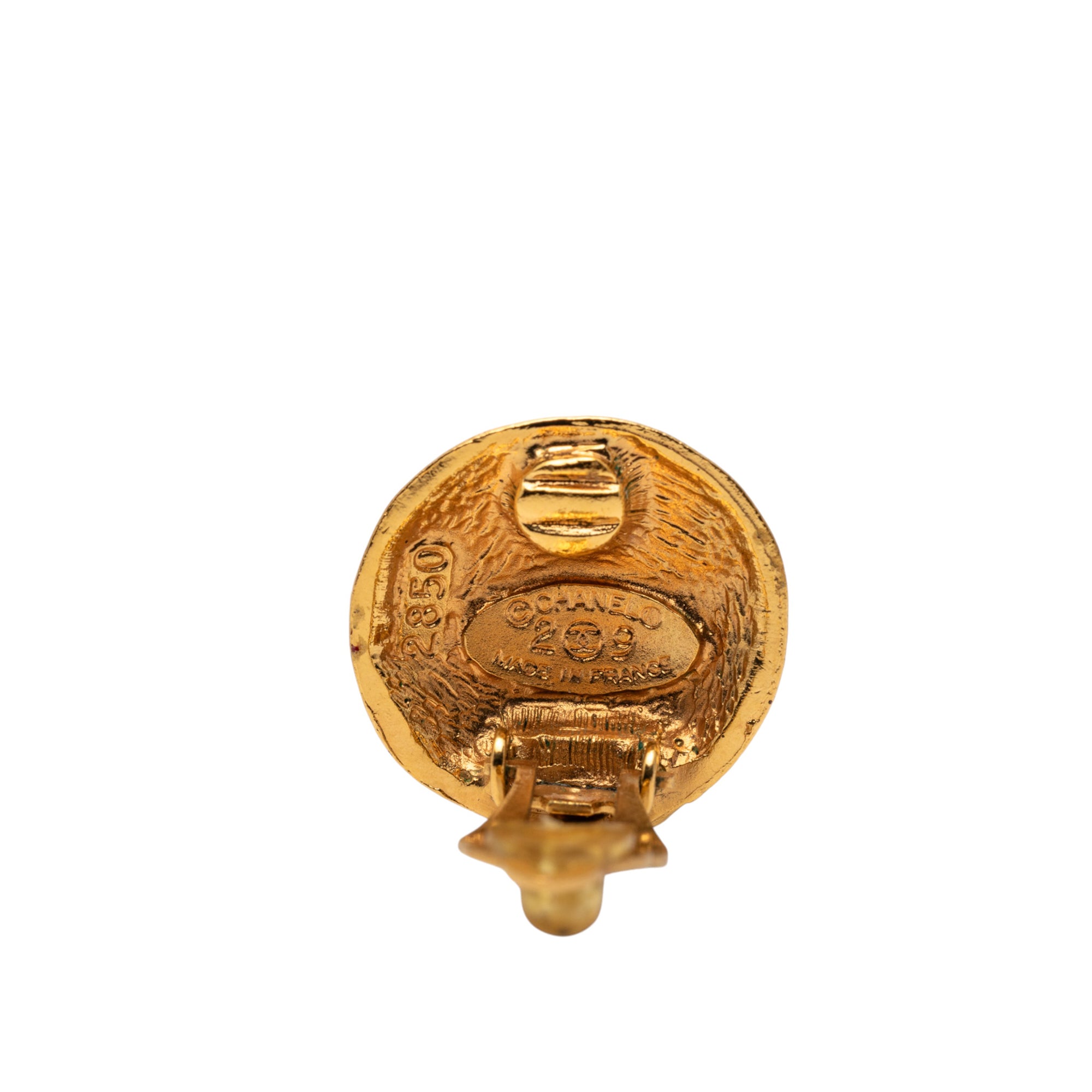 Gold Chanel Gold Plated CC Round Clip On Earrings