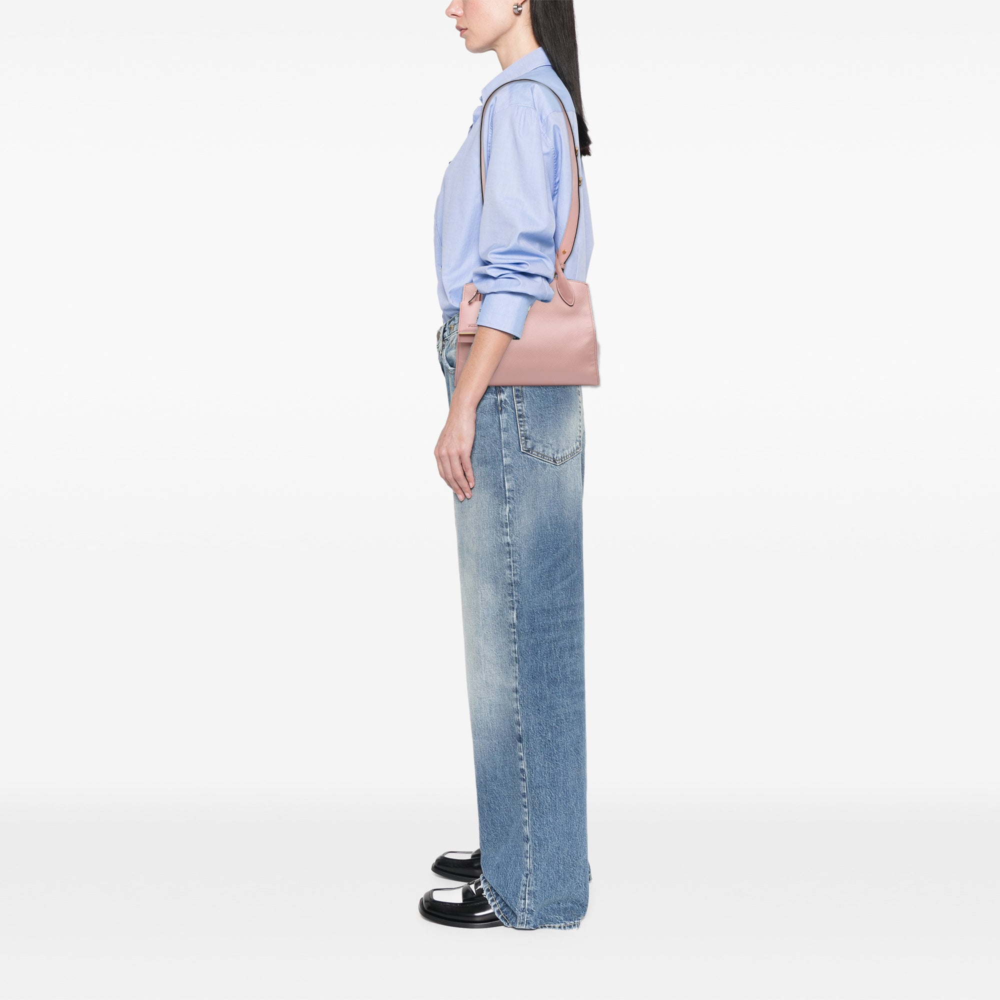 Pink Prada Small Saffiano Cuir Monochrome Top Handle Tote Satchel