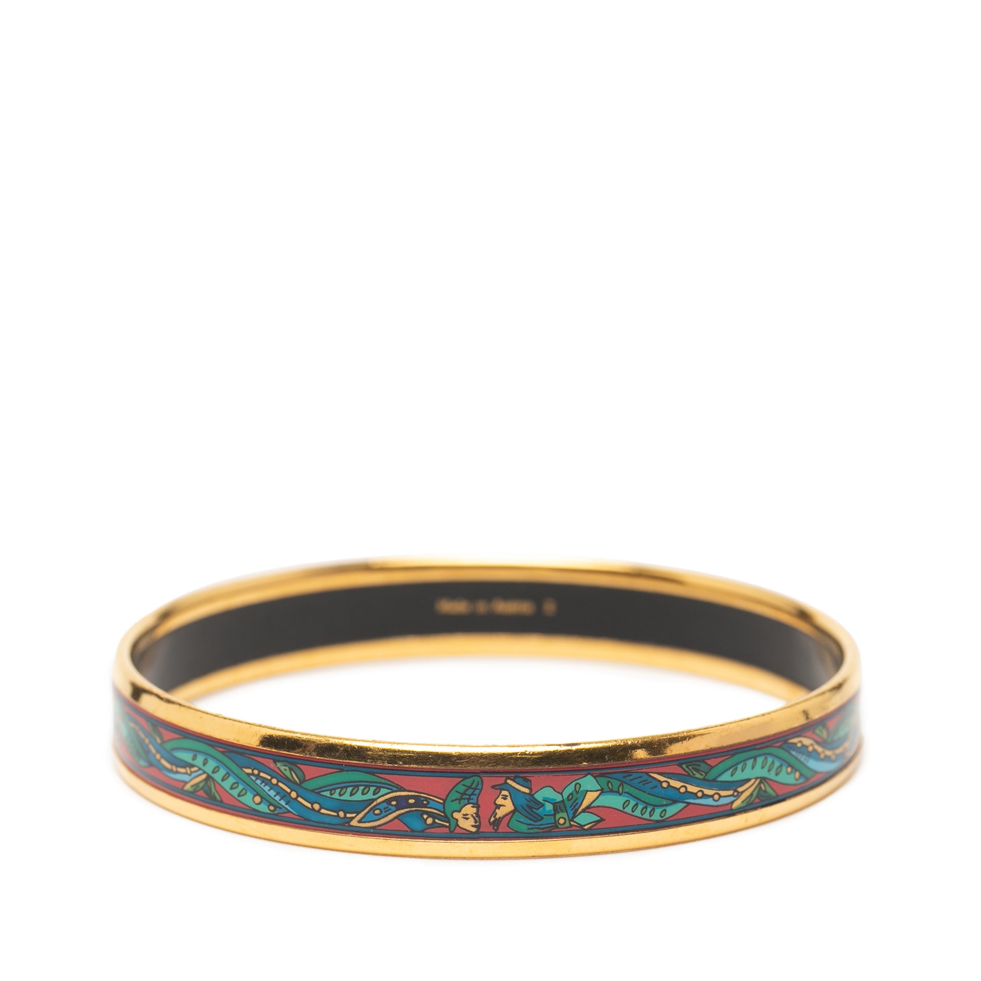 Red Hermès Narrow Enamel Cloisonne Bangle 65 Costume Bracelet