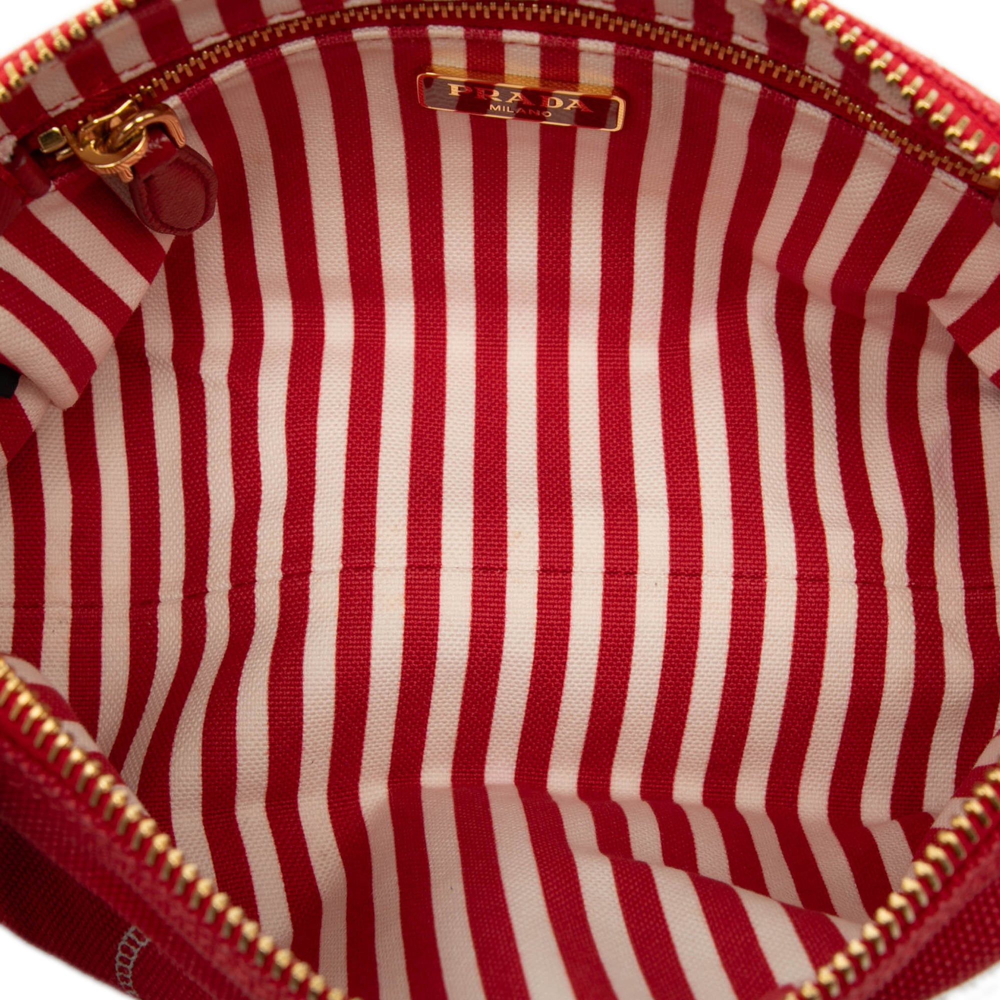 Please note this is a pre-owned item that may display signs of wear consistent with the condition listed above and shown in photos. Designer Revival guarantees this is an authentic Red Prada Canvas Canapa Logo Pouch or 100% of your money back. Learn more about our authentication process.