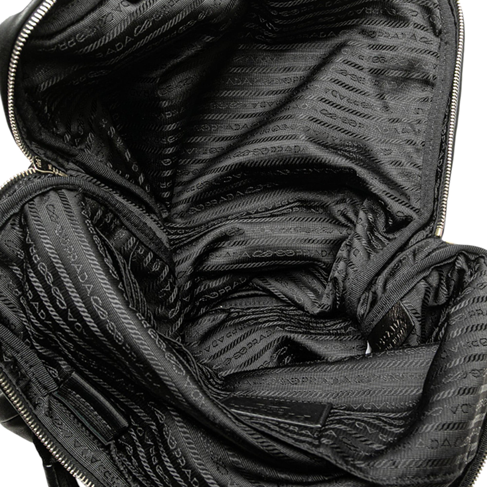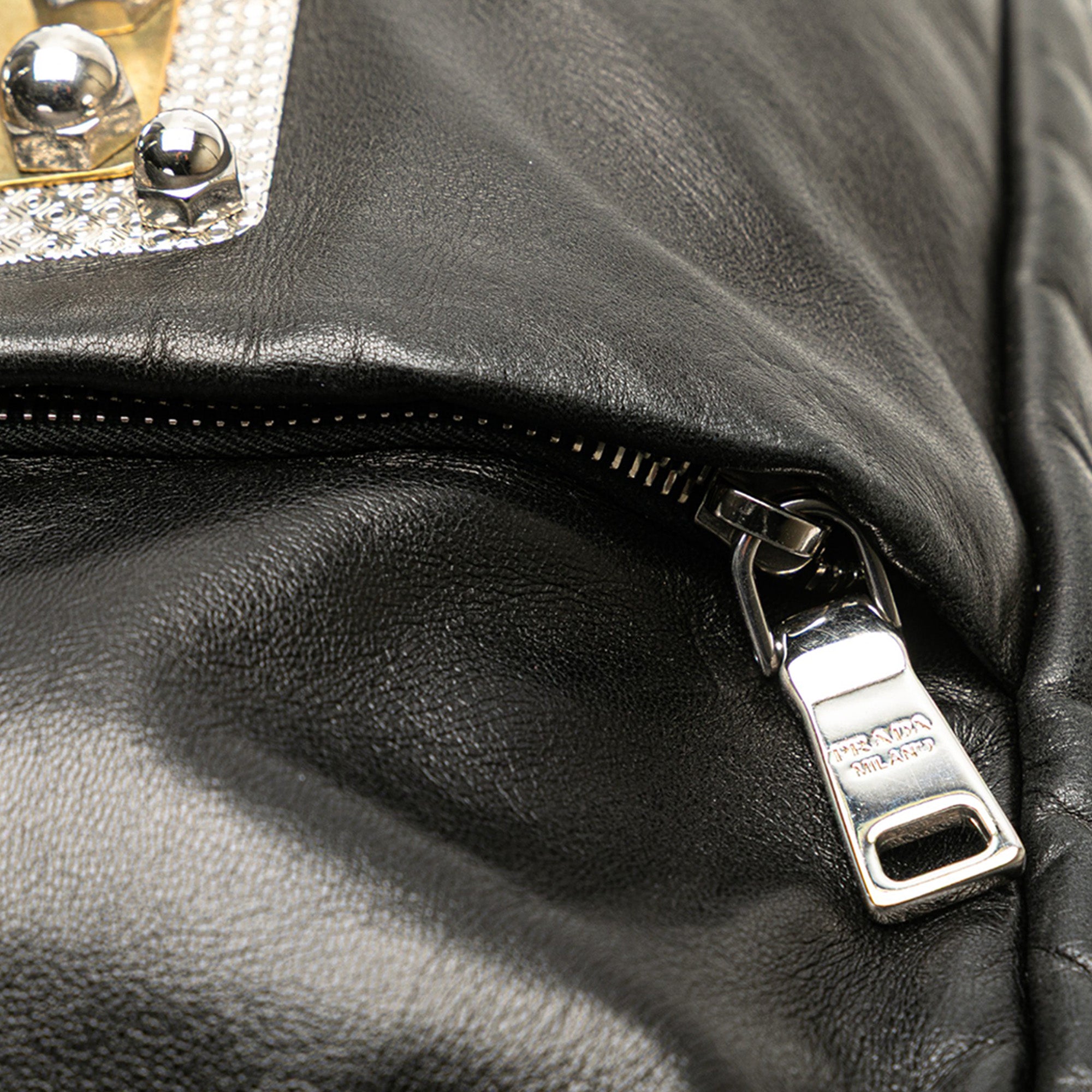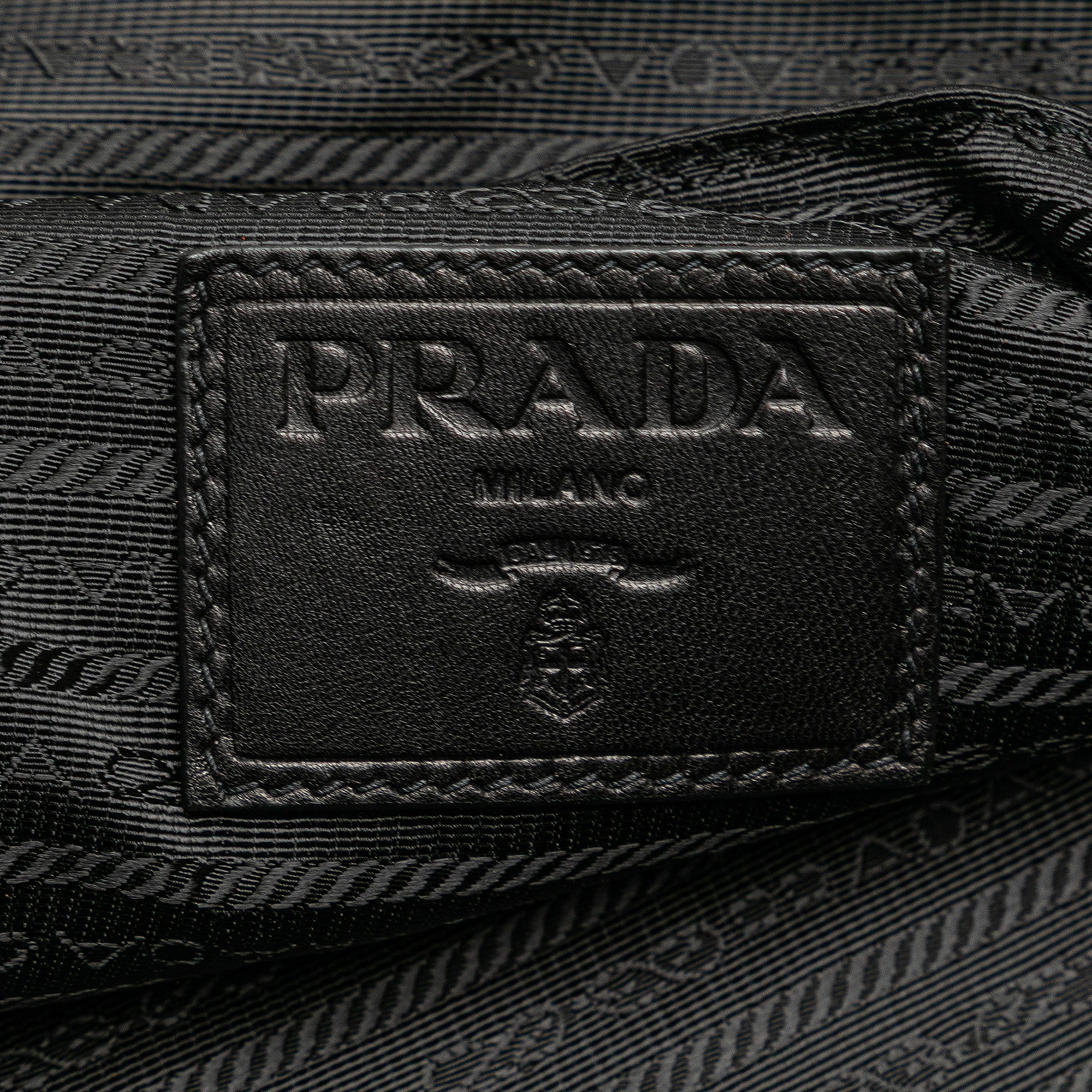 Black Prada Leather Logo Metal Plate Vertical Tote