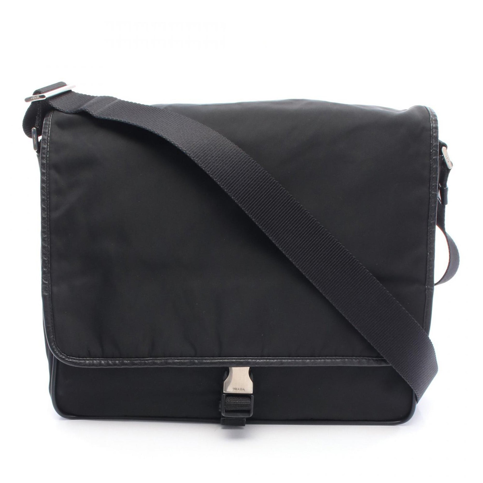 Black Prada Saffiano Trimmed Tessuto Buckle Messenger Bag