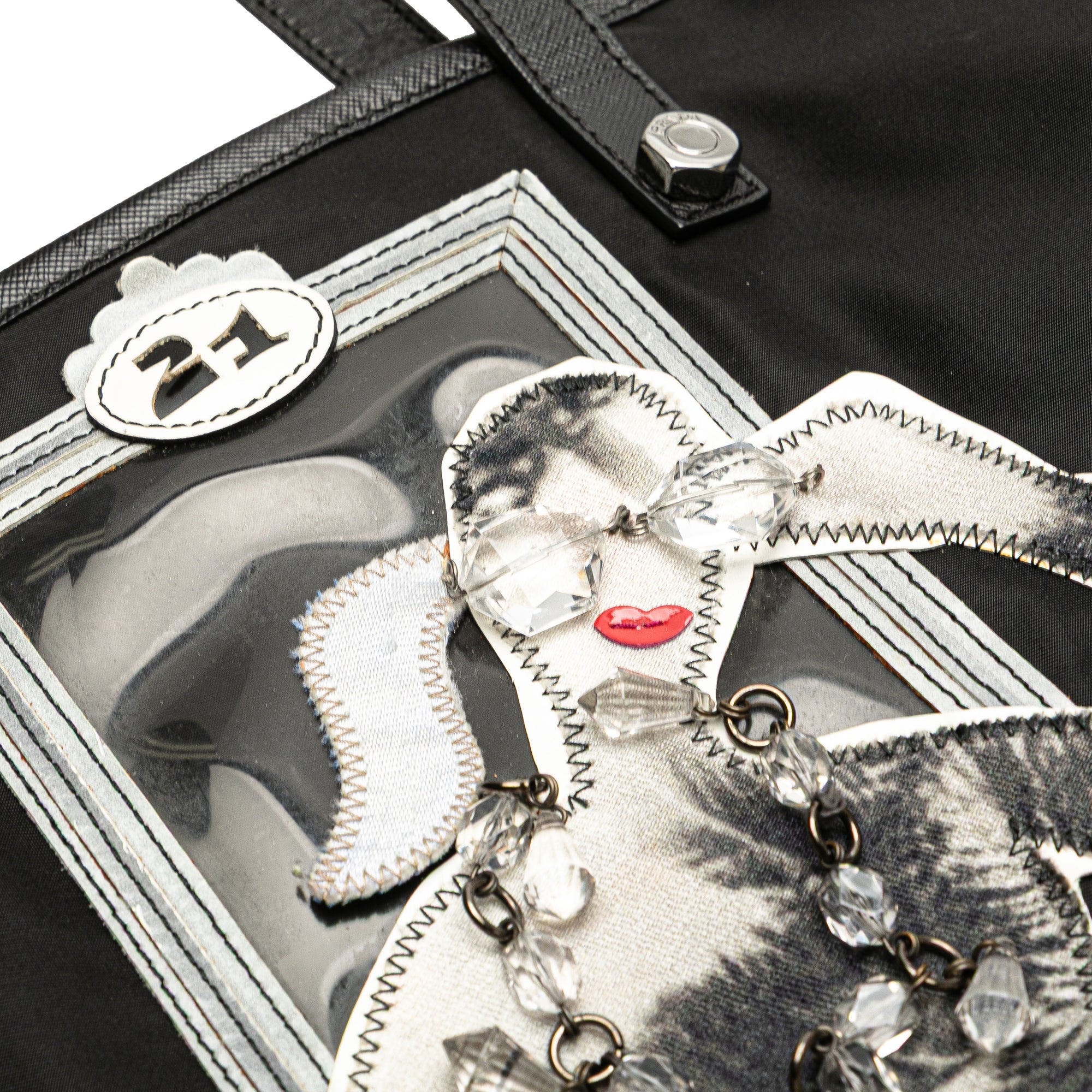 Black Prada Saffiano Trimmed Tessuto Robot Satchel
