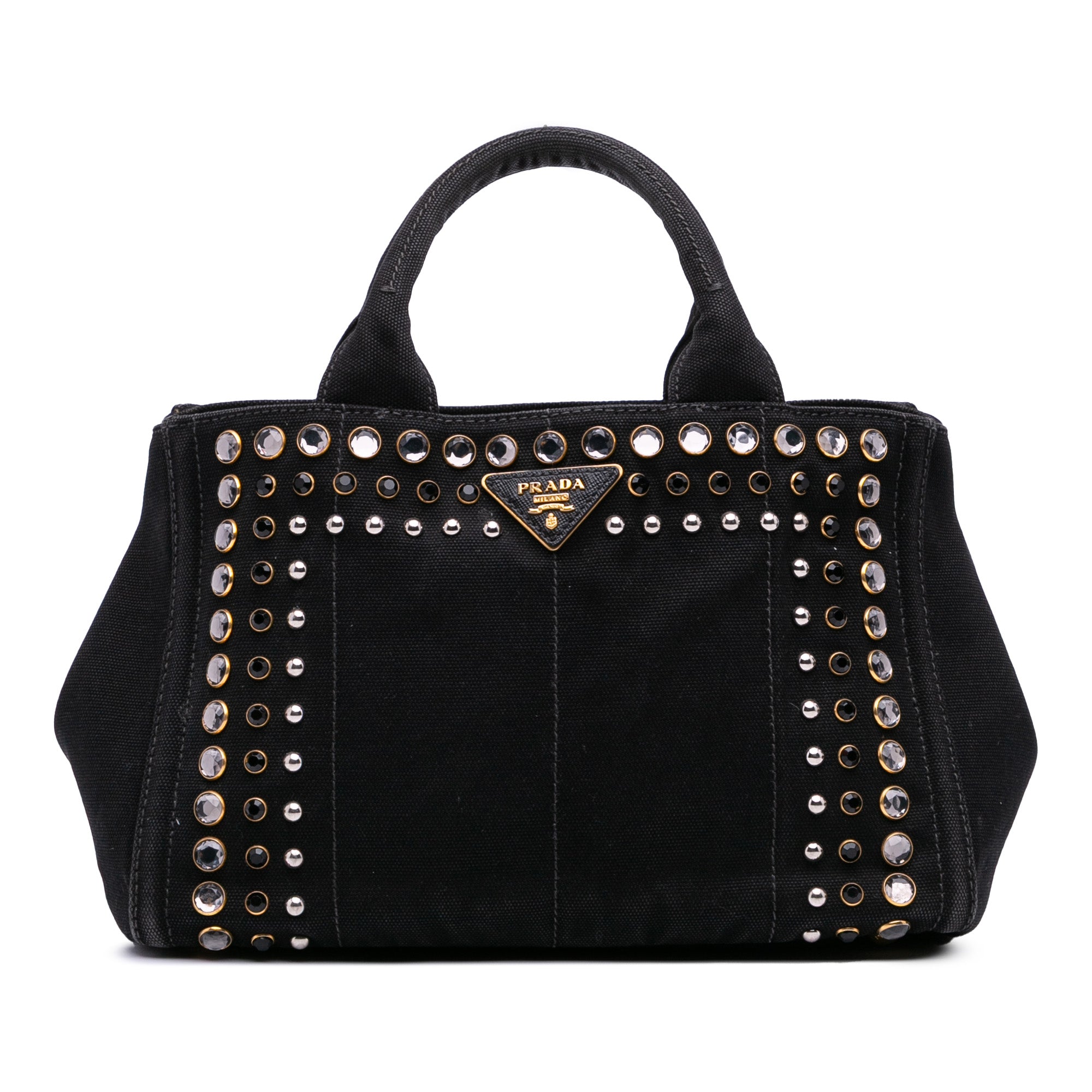 Black Prada Small Canvas Canapa Bijoux Satchel