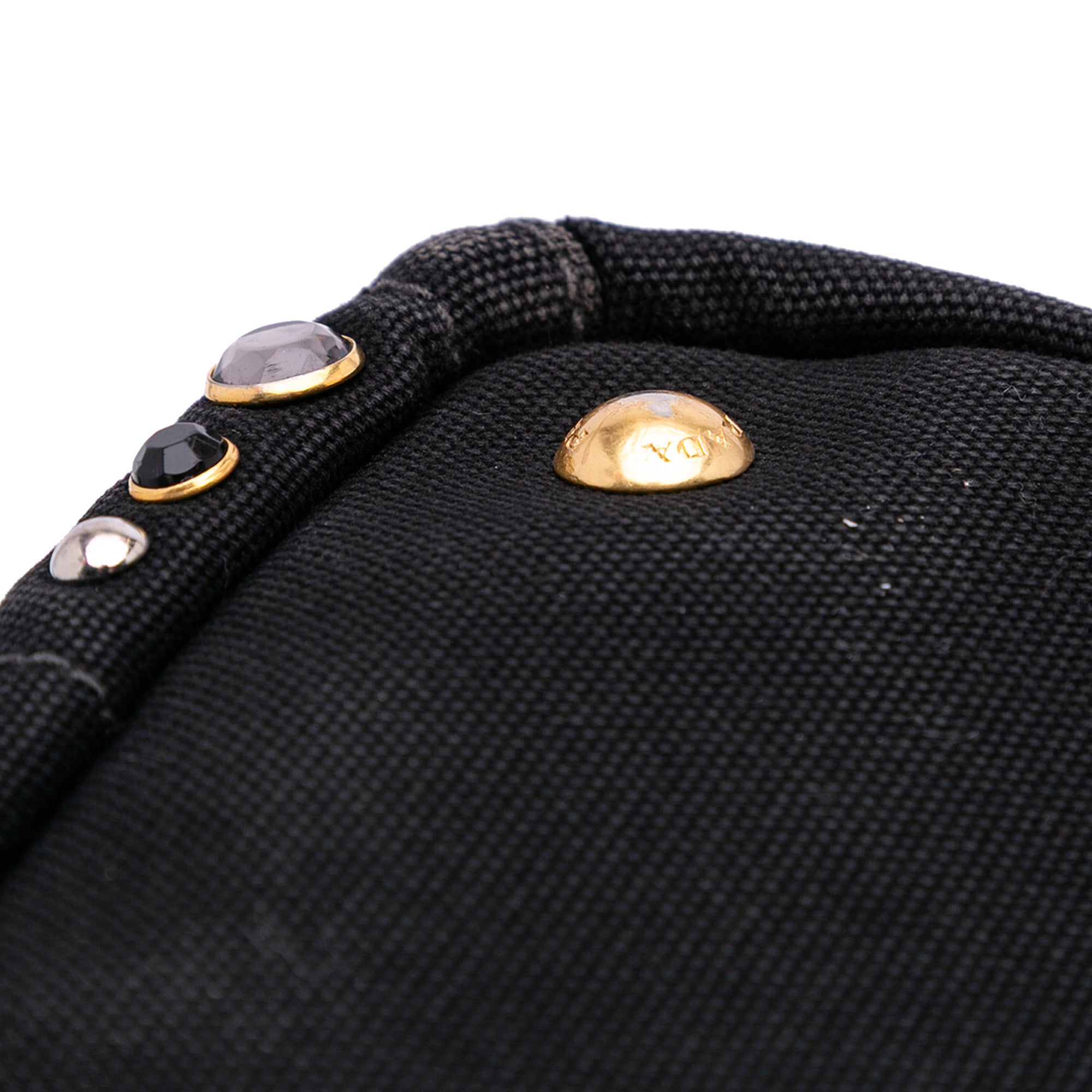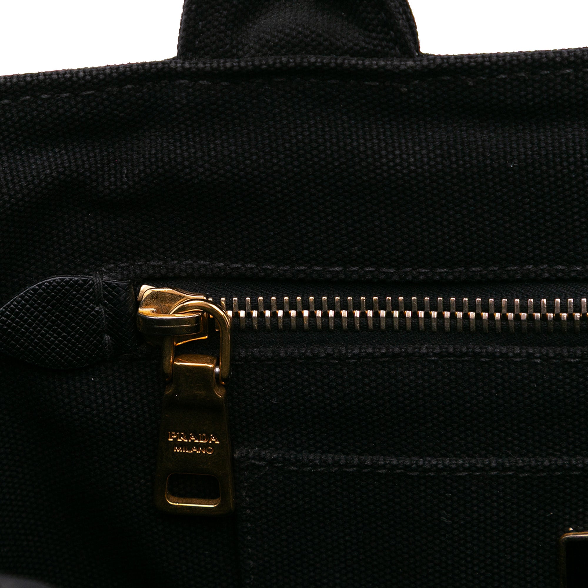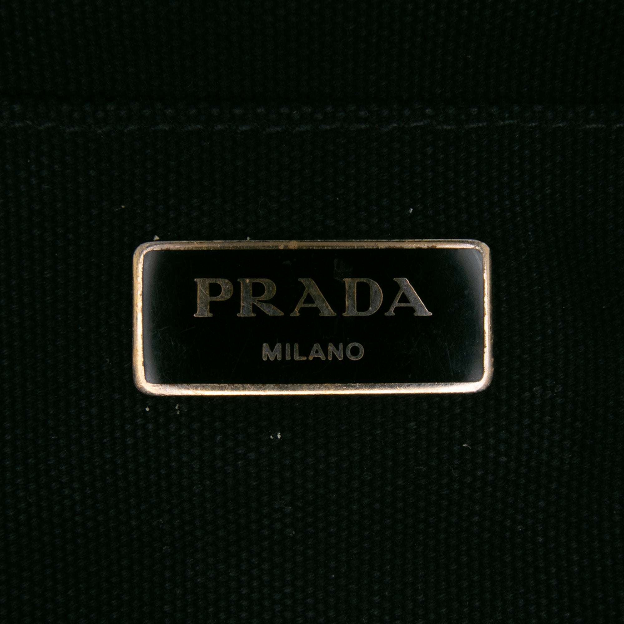 Please note this is a pre-owned item that may display signs of wear consistent with the condition listed above and shown in photos. Designer Revival guarantees this is an authentic Black Prada Small Canvas Canapa Bijoux Satchel or 100% of your money back. Learn more about our authentication process.