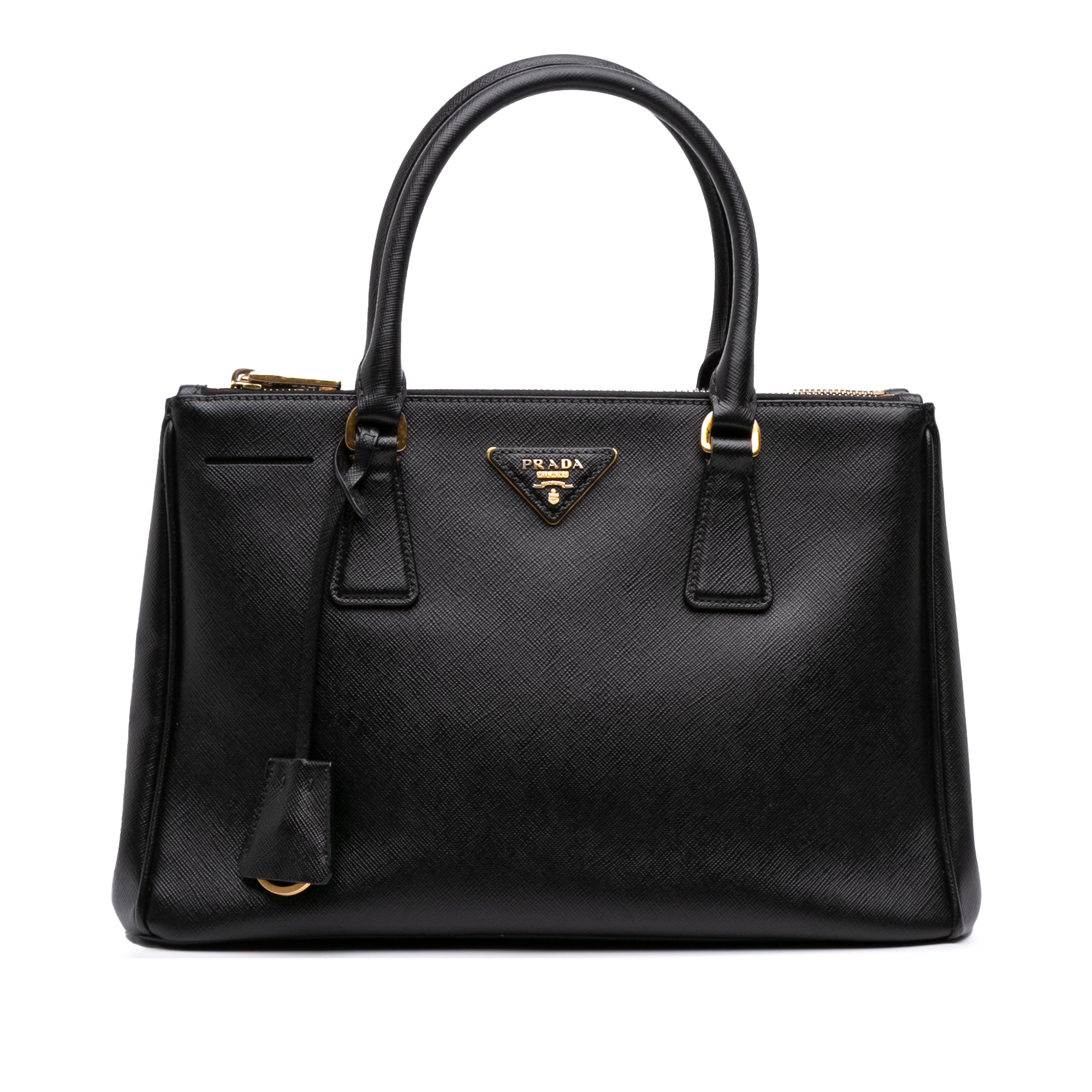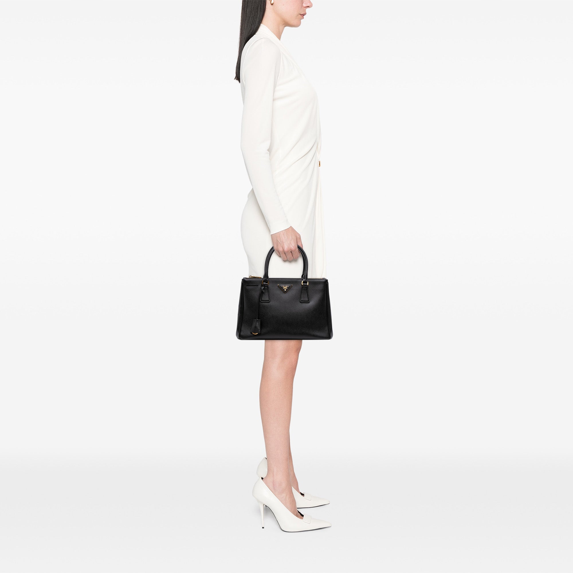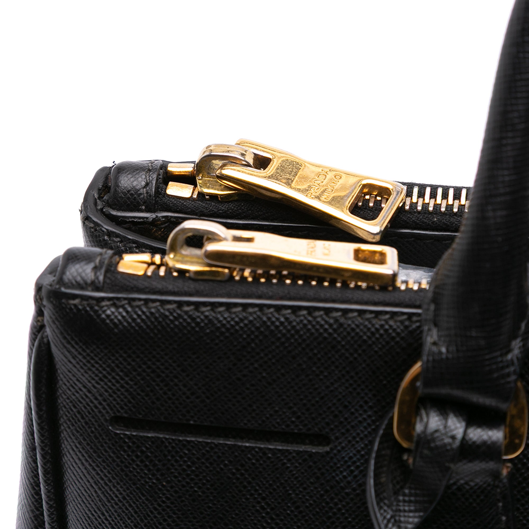 Black Prada Small Saffiano Lux Galleria Double Zip Satchel