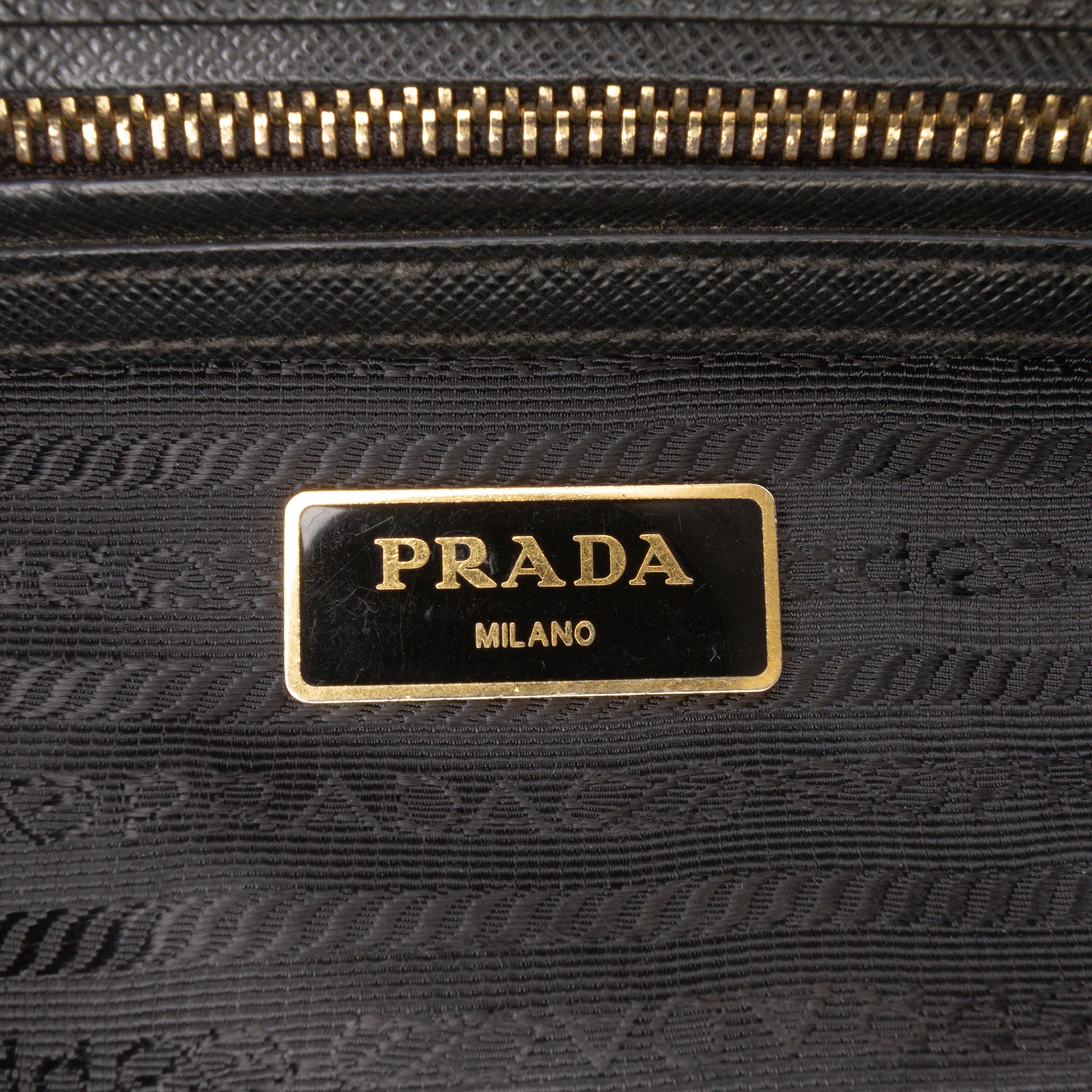Please note this is a pre-owned item that may display signs of wear consistent with the condition listed above and shown in photos. Designer Revival guarantees this is an authentic Black Prada Small Saffiano Lux Galleria Double Zip Satchel or 100% of your money back. Learn more about our authentication process.