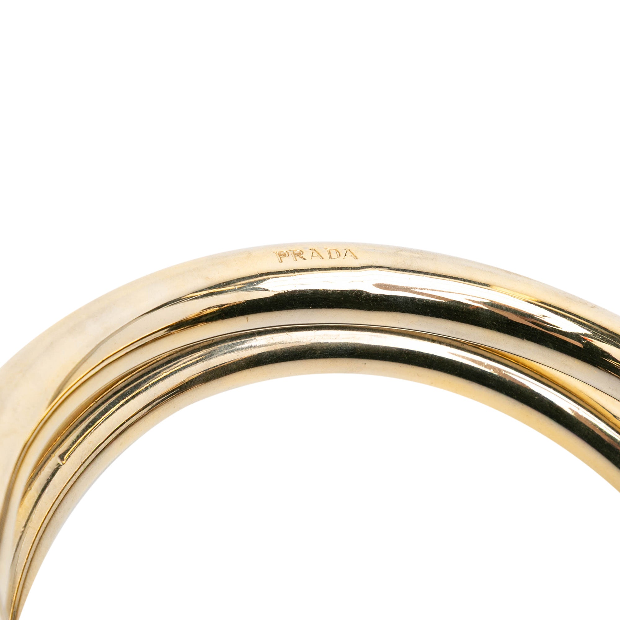 Product Details: Black Prada Tessuto Handbag. This handbag features a nylon body, a gold-tone metal top handles, a top zip closure, and an interior zip pocket. 8.3" L x 9.8" W x 5.1" D, 4.7" drop.