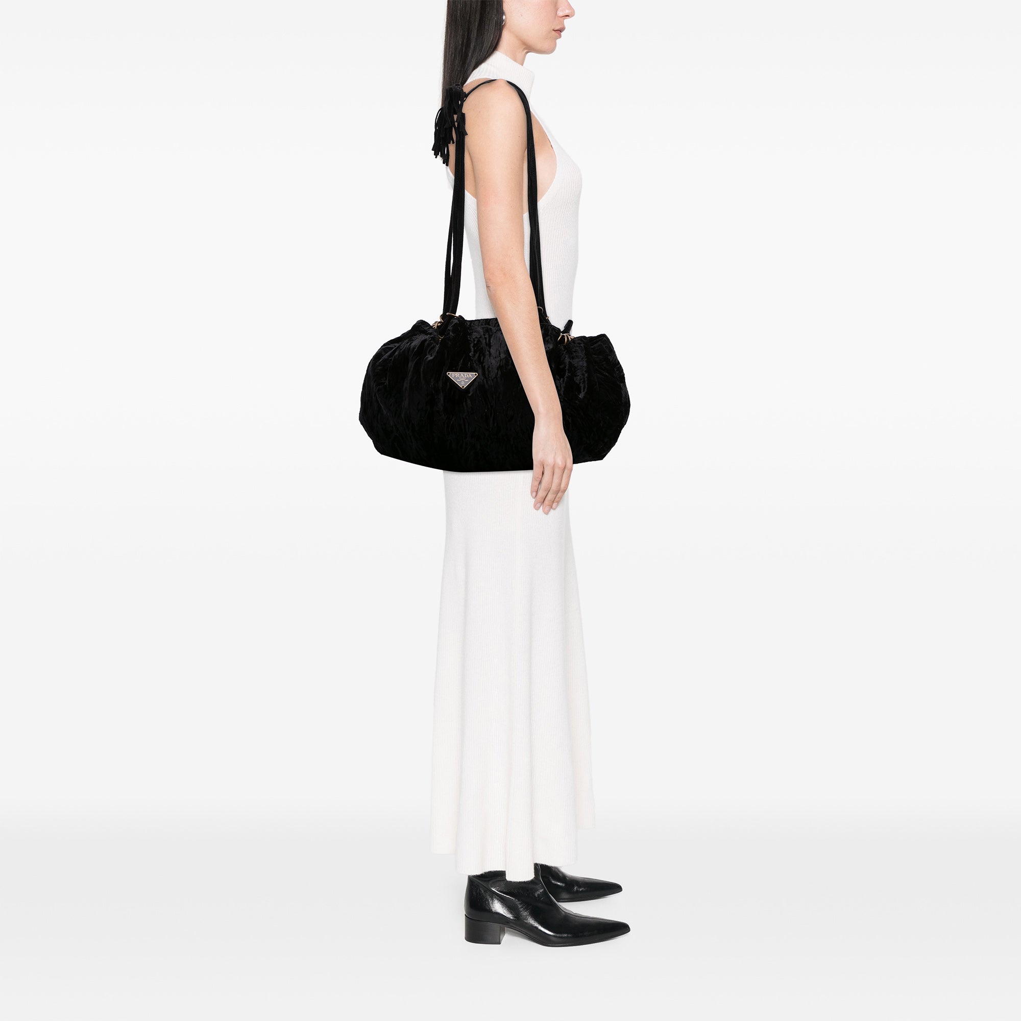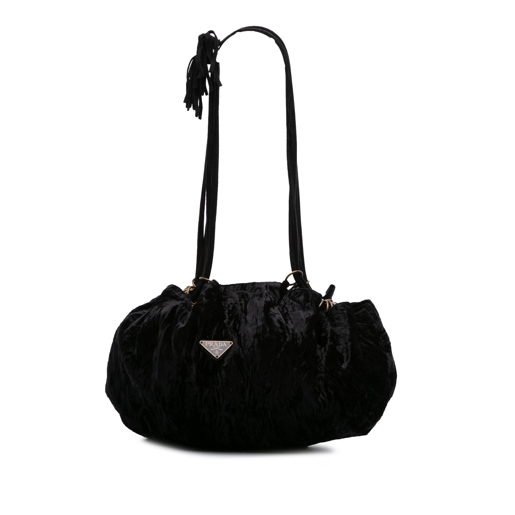 Black Prada Velvet Shoulder Bag - Designer Revival Black Prada Velvet Shoulder Bag - Designer Revival