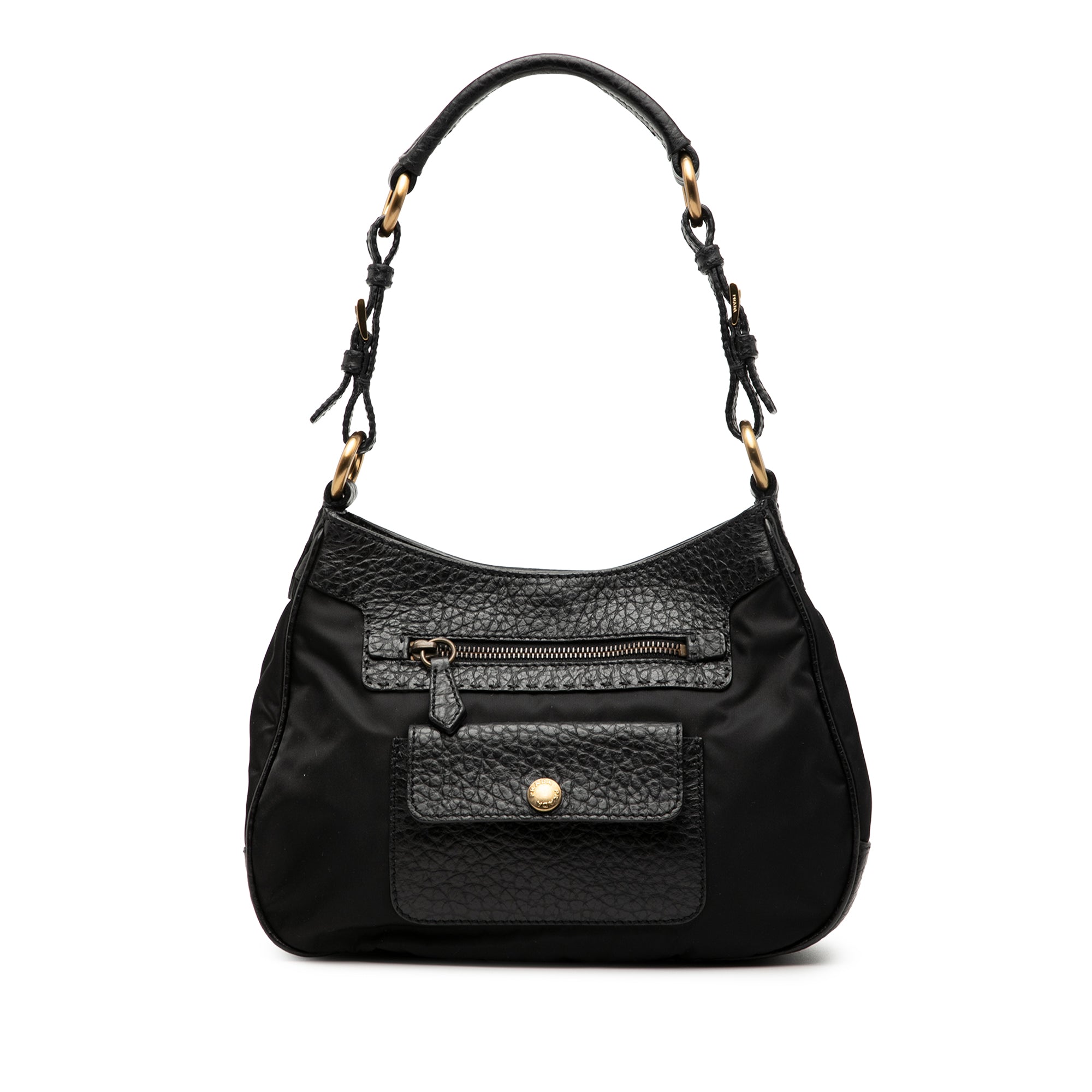 Black Prada Vitello Daino Trimmed Tessuto Shoulder Bag
