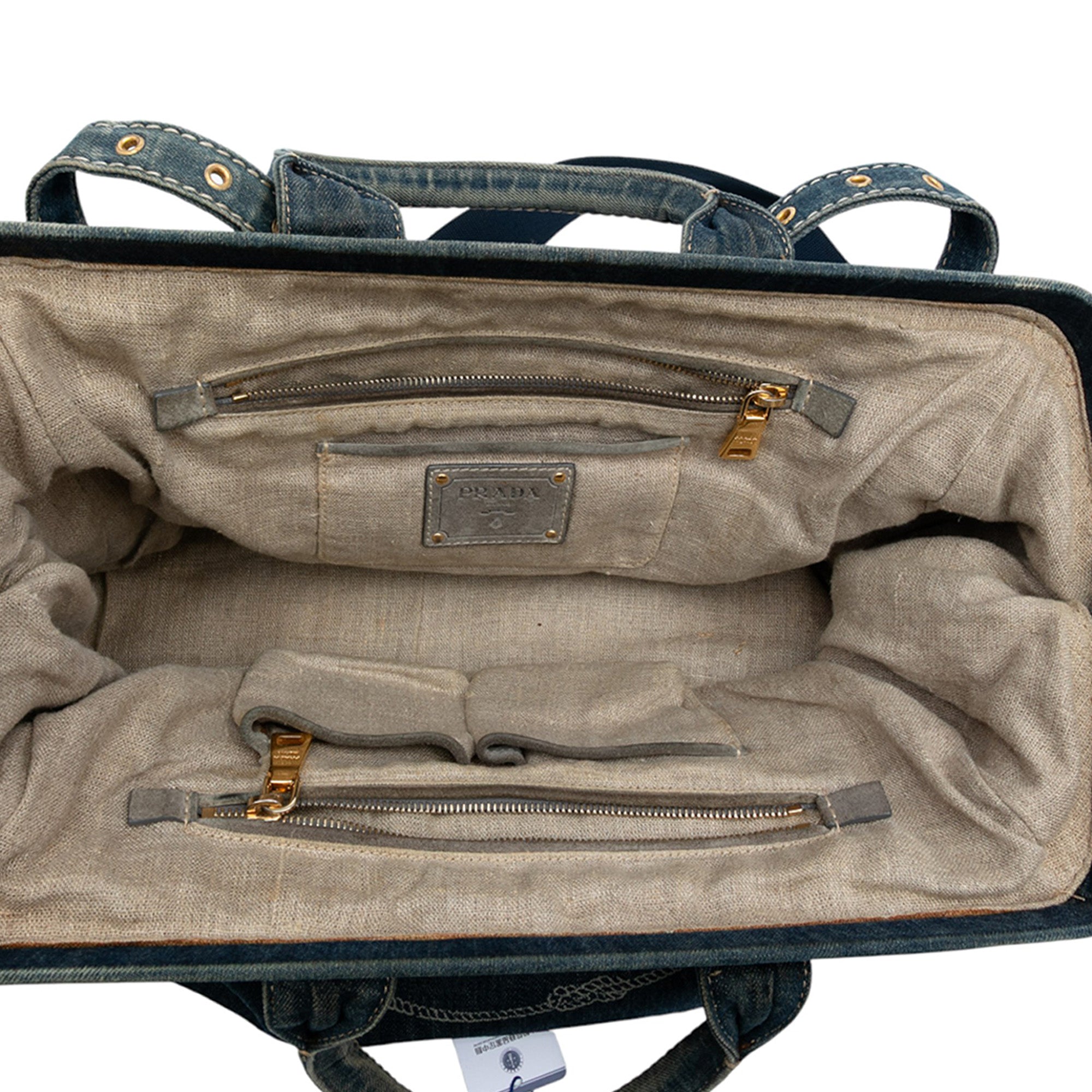 Please note this is a pre-owned item that may display signs of wear consistent with the condition listed above and shown in photos. Designer Revival guarantees this is an authentic Blue Prada Denim Canapa Logo Satchel or 100% of your money back. Learn more about our authentication process.
