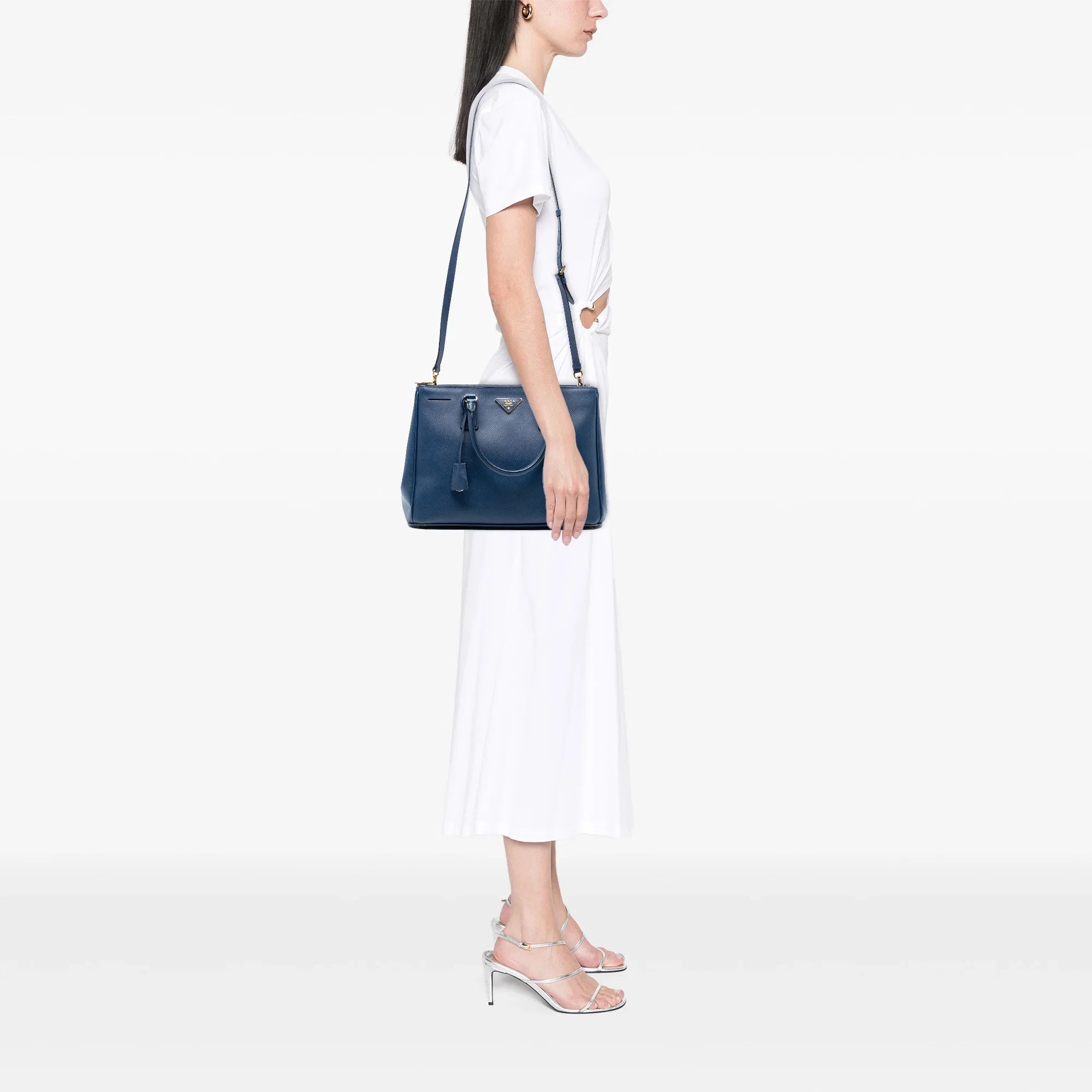 Blue Prada Medium Saffiano Lux Galleria Double Zip Satchel