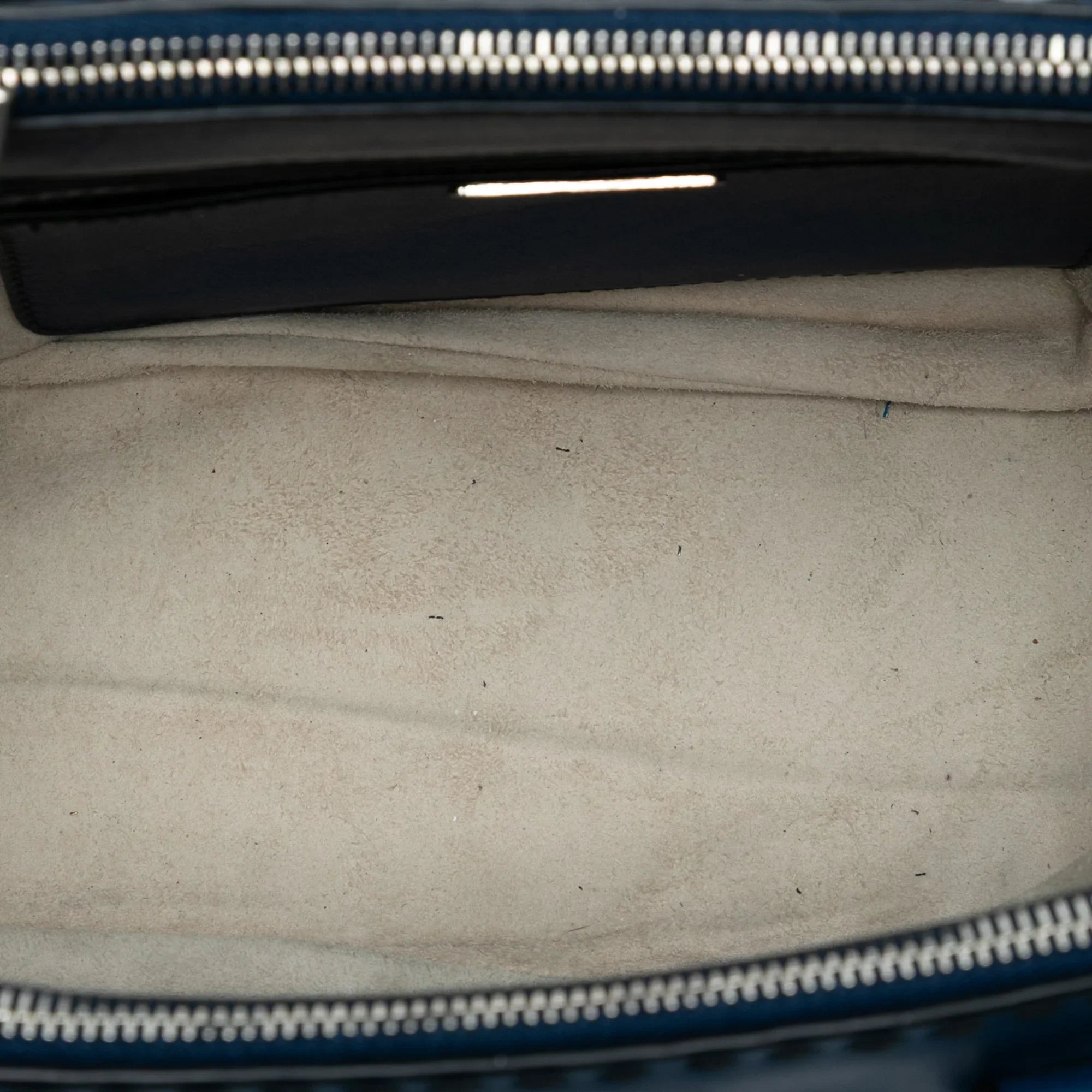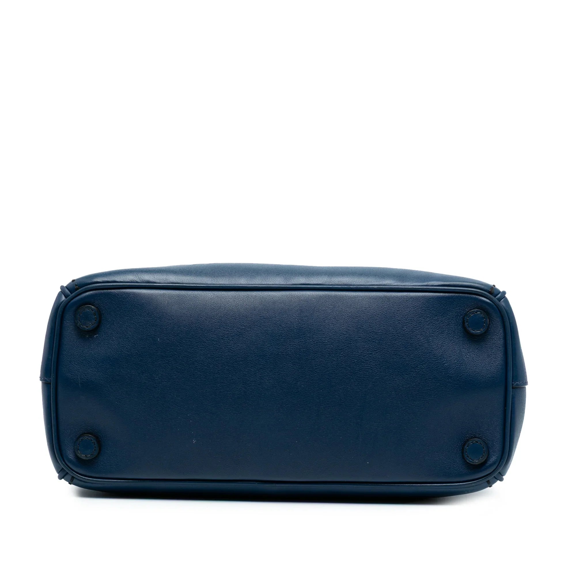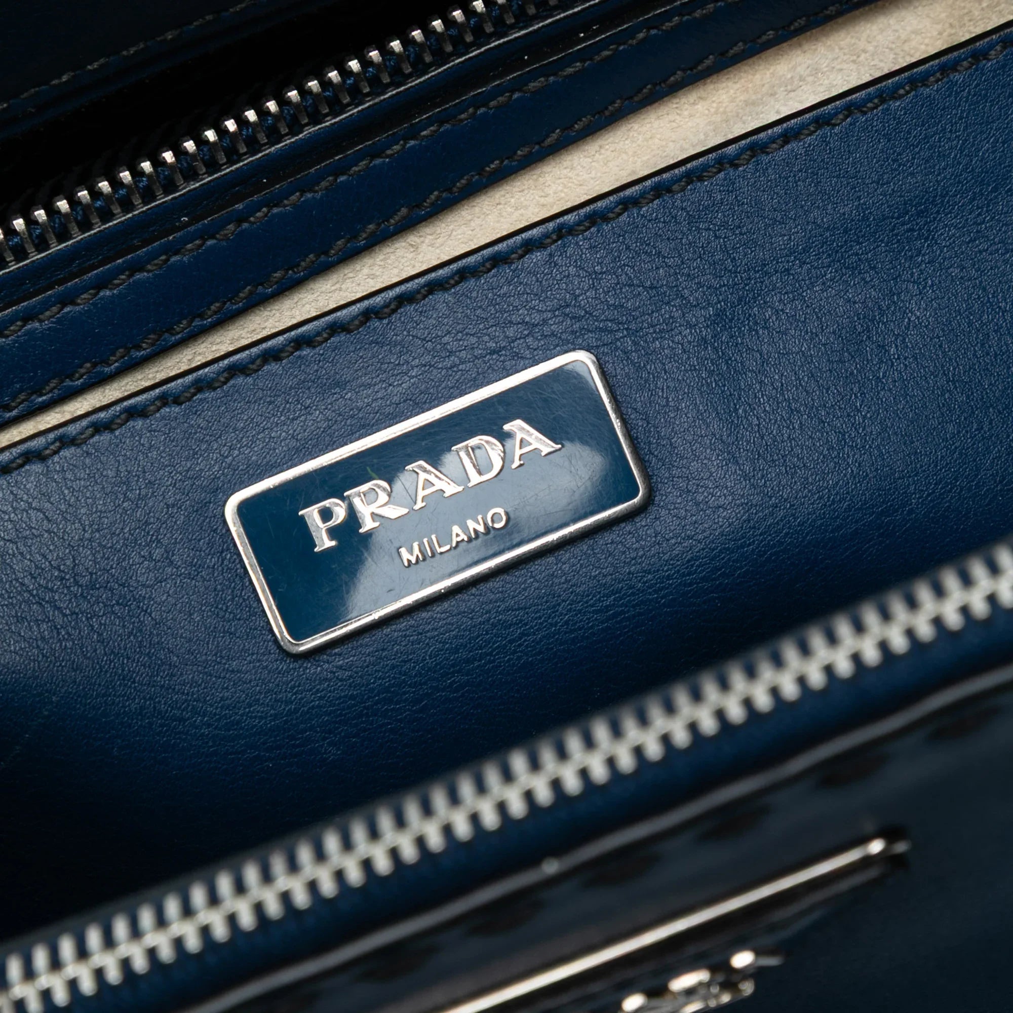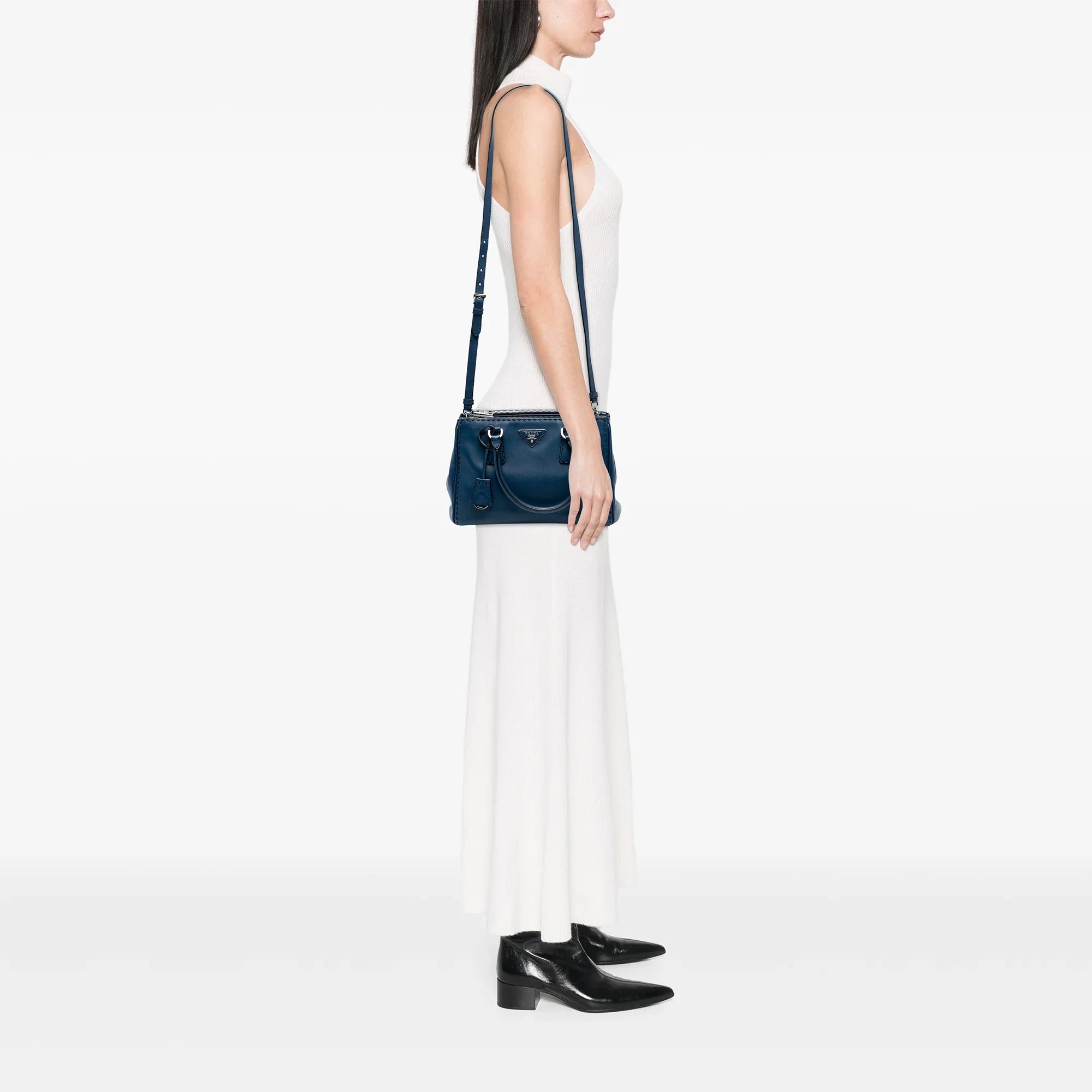 Blue Prada Small City Calf Hand Stitched Galleria Double Zip Satchel