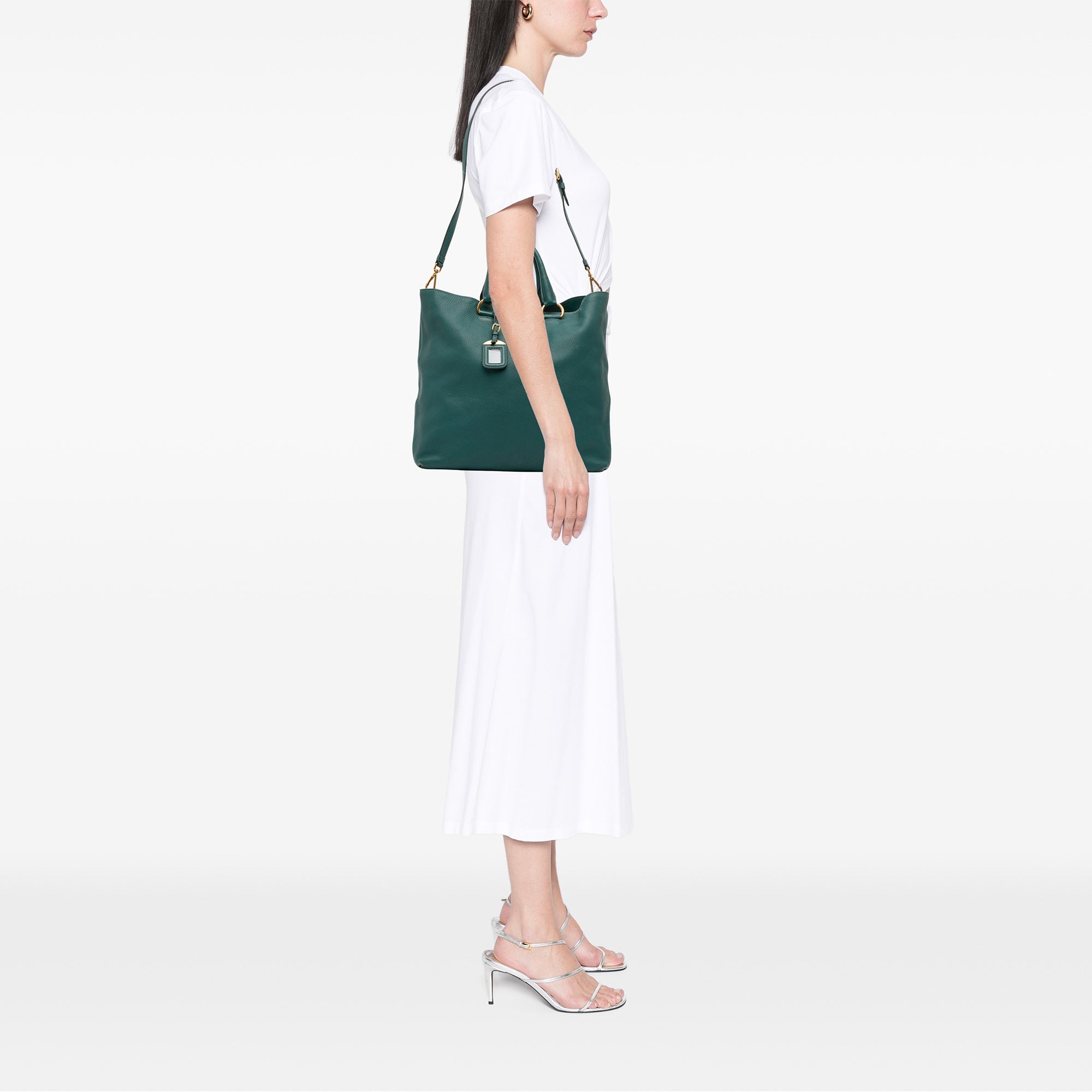 Blue Prada Vitello Daino Open Convertible Tote Satchel