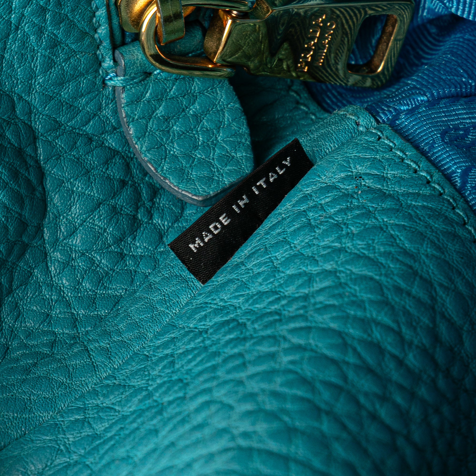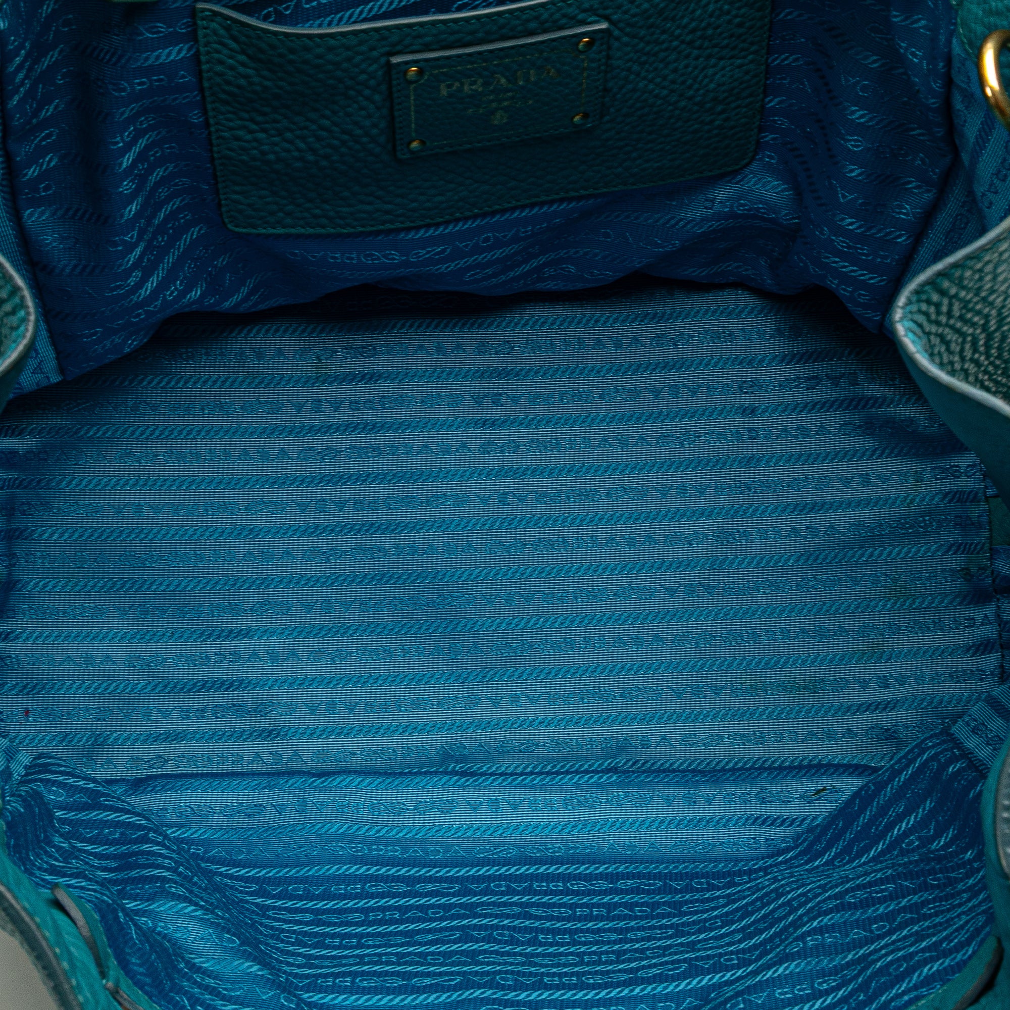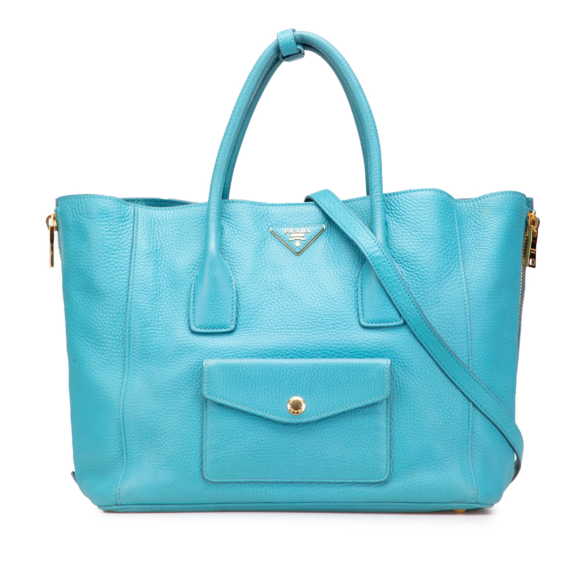 Blue Prada Vitello Daino Side Zip Twin Pocket Open Convertible Tote Satchel