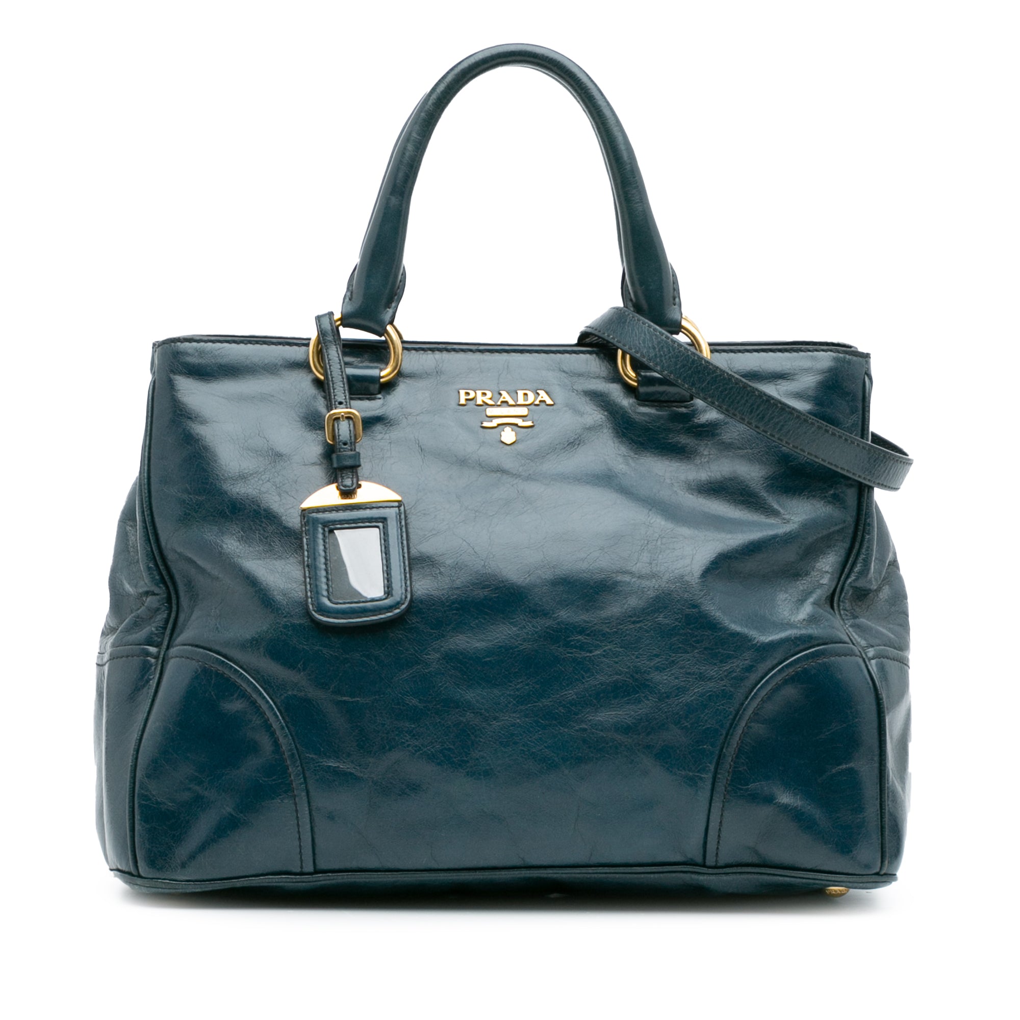 Blue Prada Vitello Shine Satchel