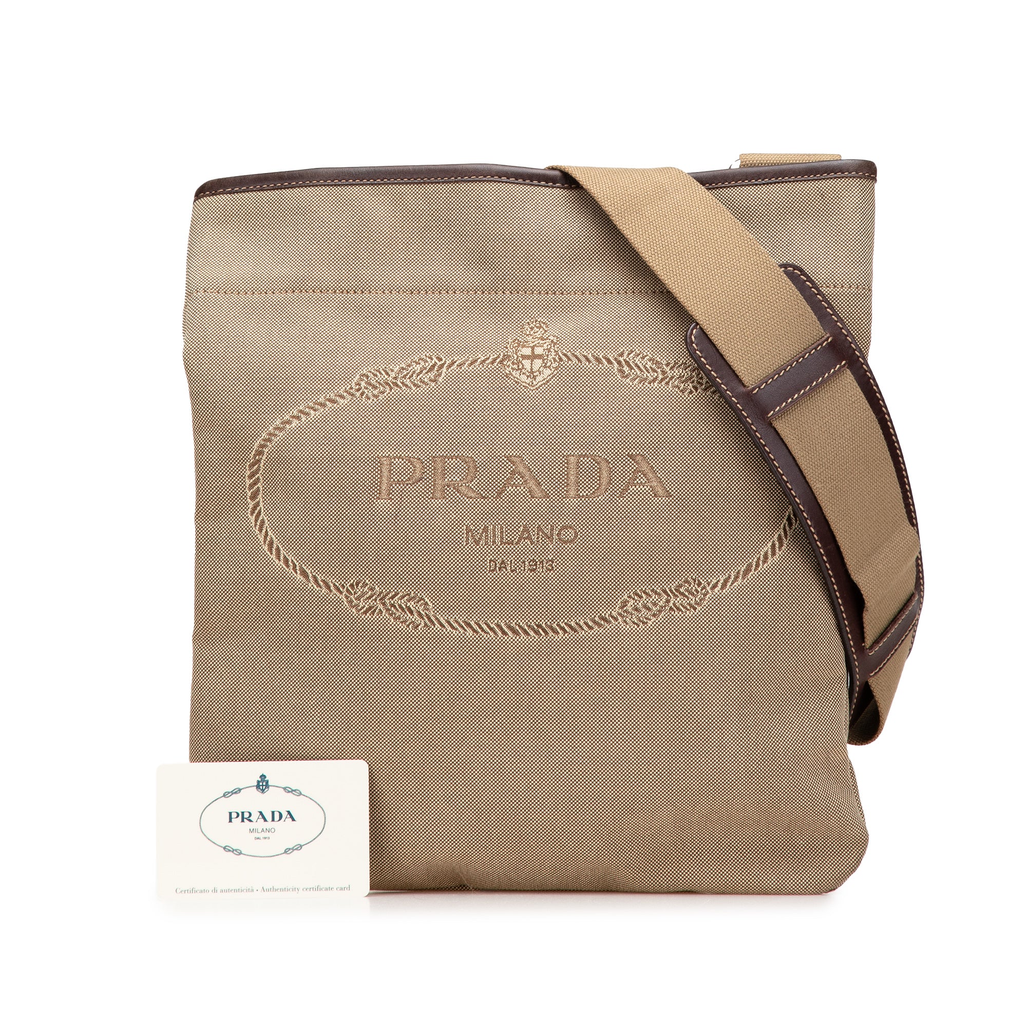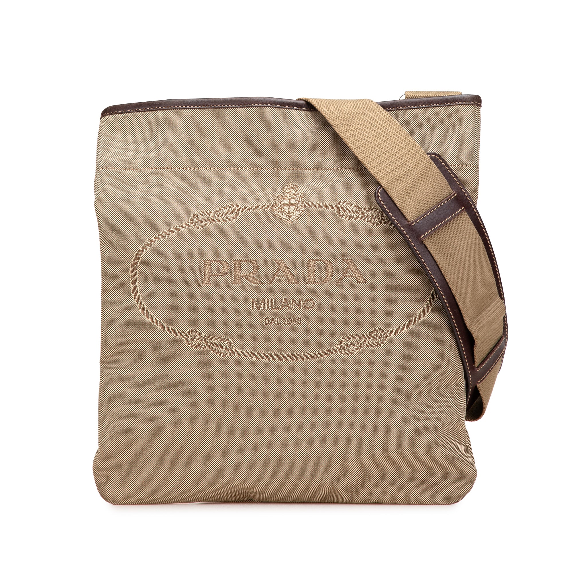 Brown Prada Canvas Canapa Logo Crossbody - Designer Revival Brown Prada Canvas Canapa Logo Crossbody - Designer Revival