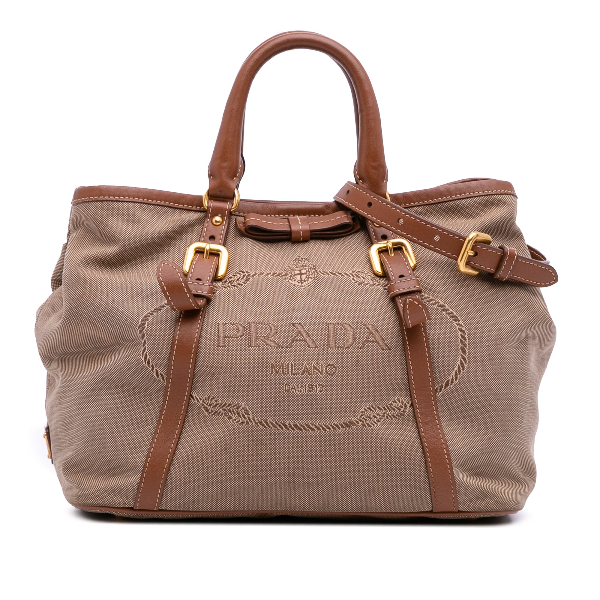 Brown Prada Canvas Canapa Logo Satchel