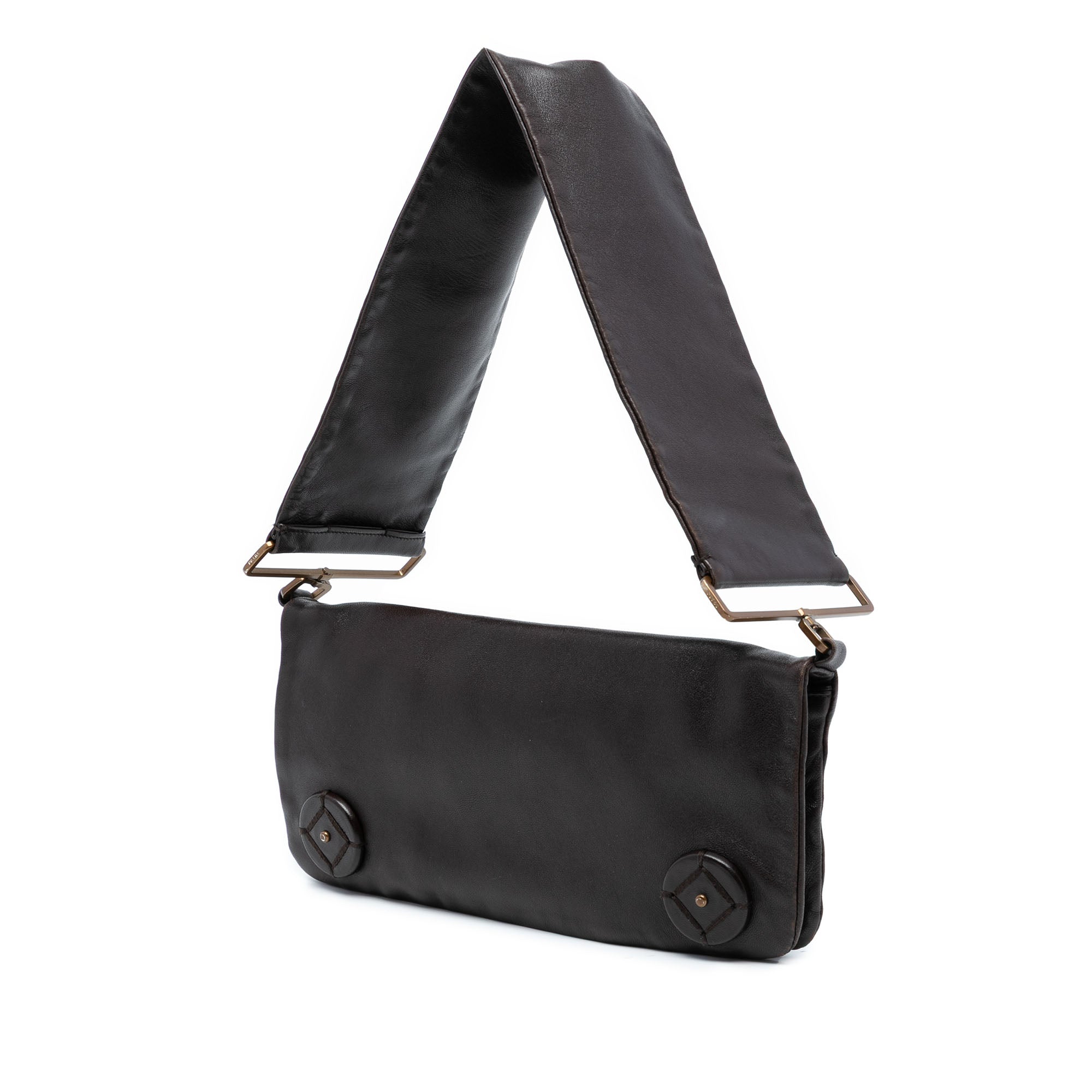Brown Prada Leather Fold Over Shoulder Bag