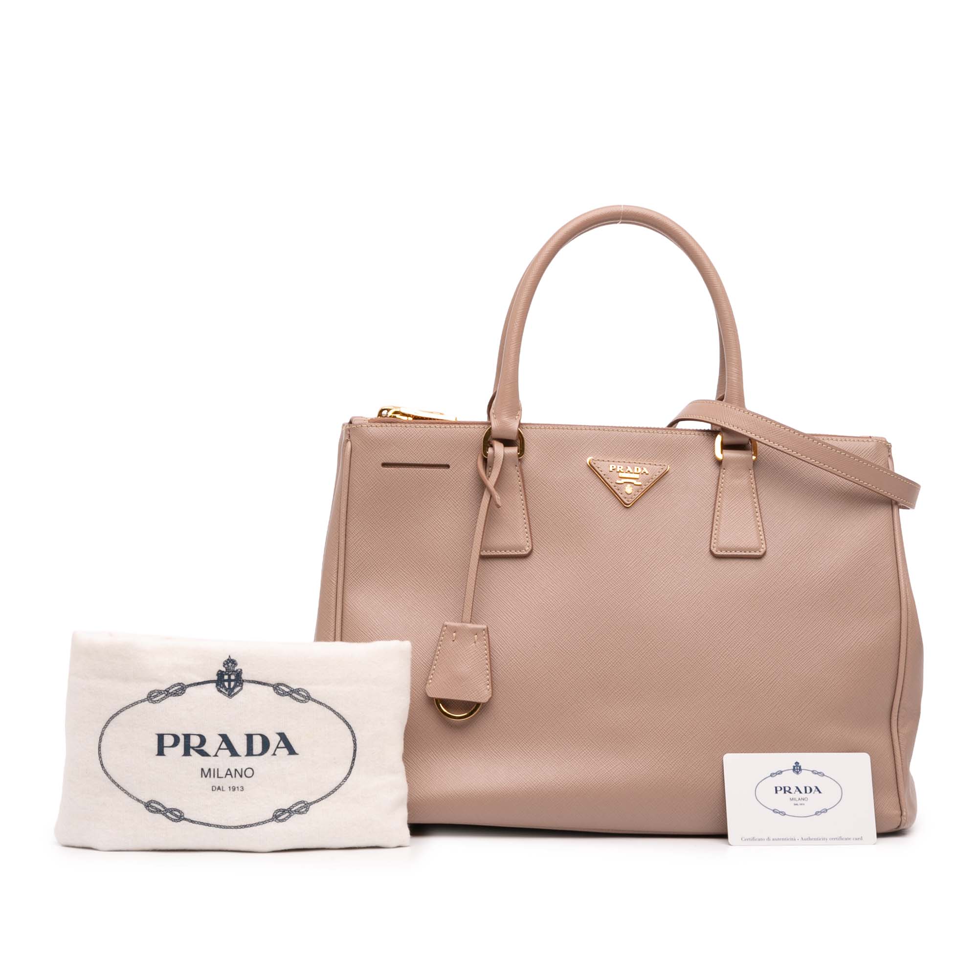 Please note this is a pre-owned item that may display signs of wear consistent with the condition listed above and shown in photos. Designer Revival guarantees this is an authentic Brown Prada Medium Saffiano Lux Galleria Double Zip Satchel or 100% of your money back. Learn more about our authentication process.