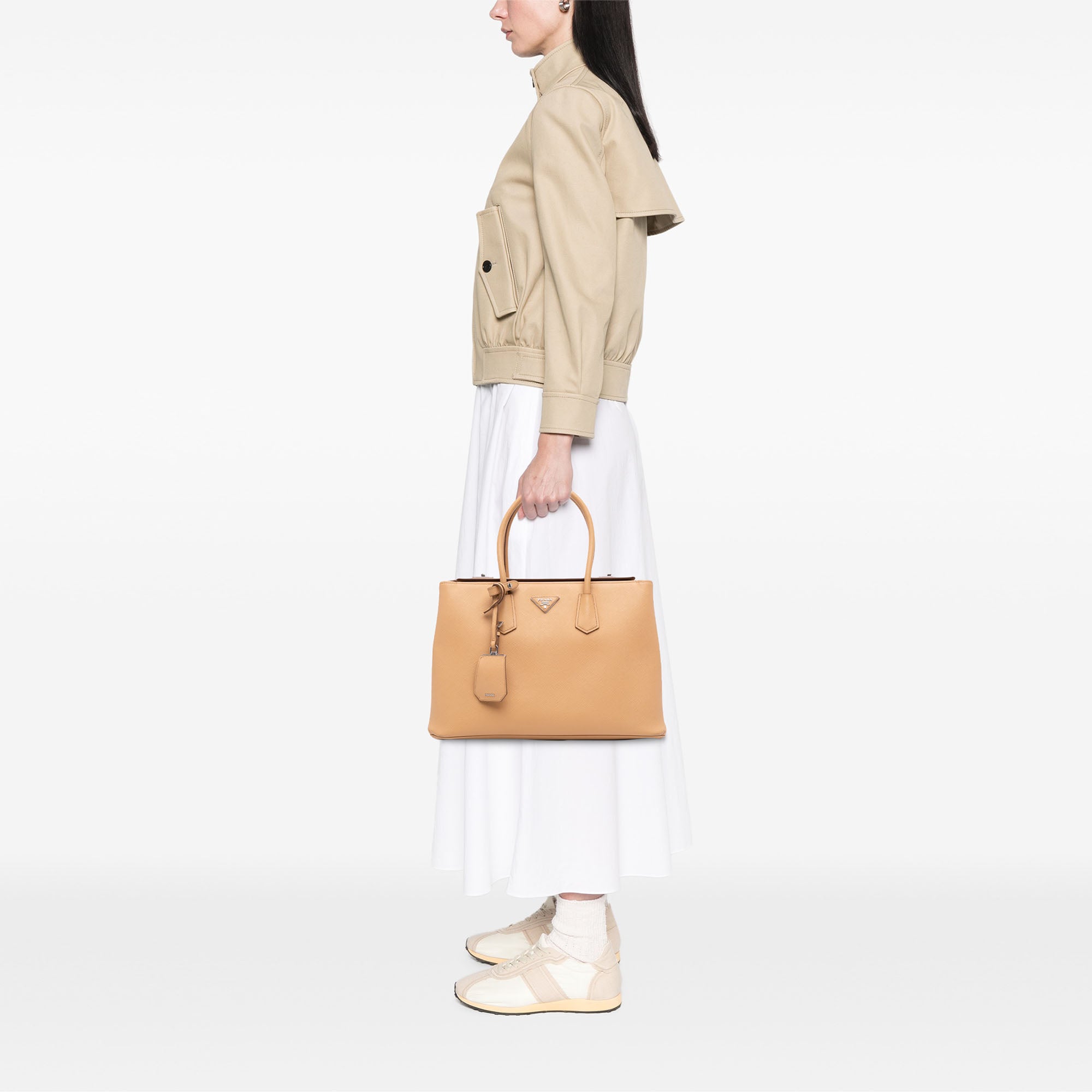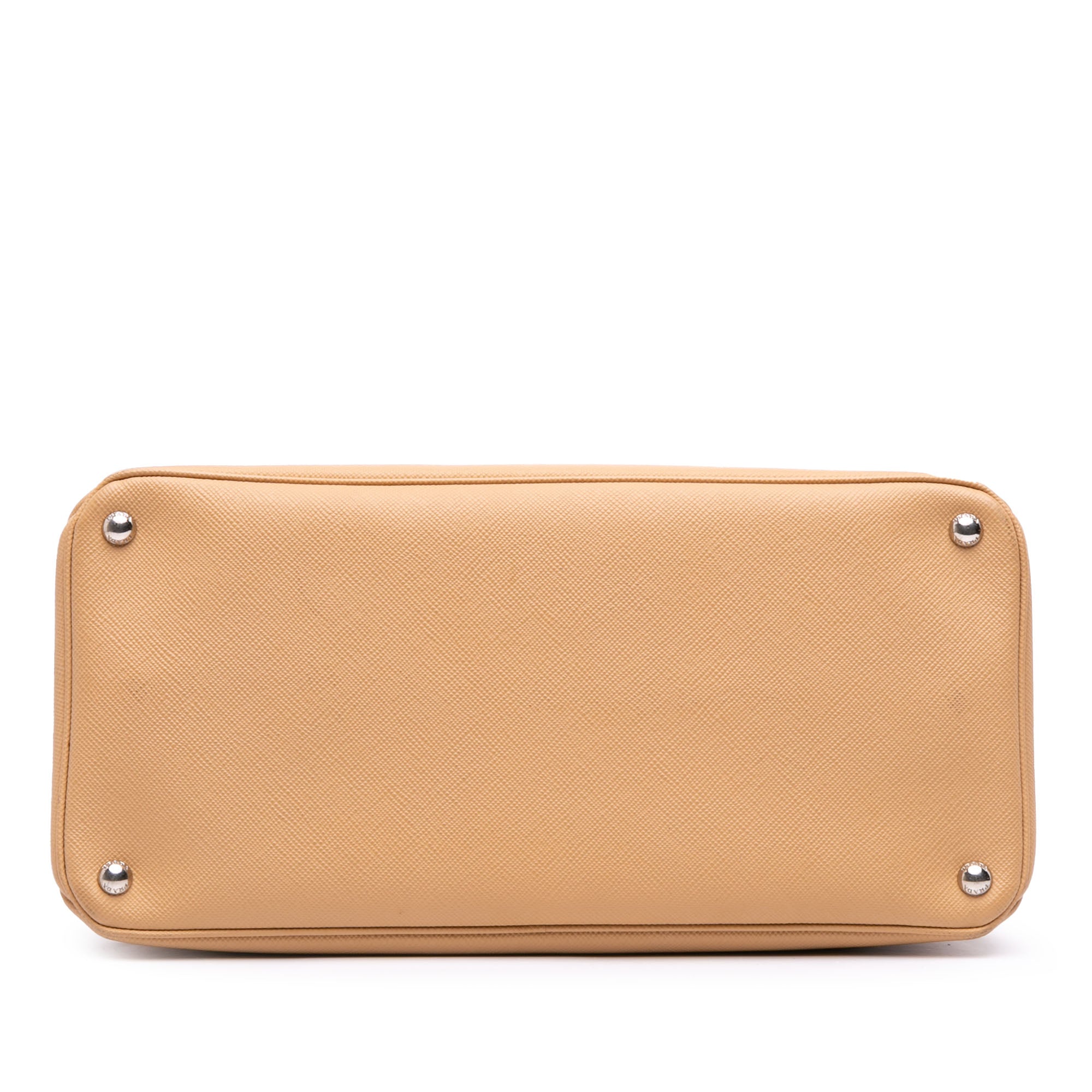 TAN Prada Saffiano Cuir Twin Lock Satchel