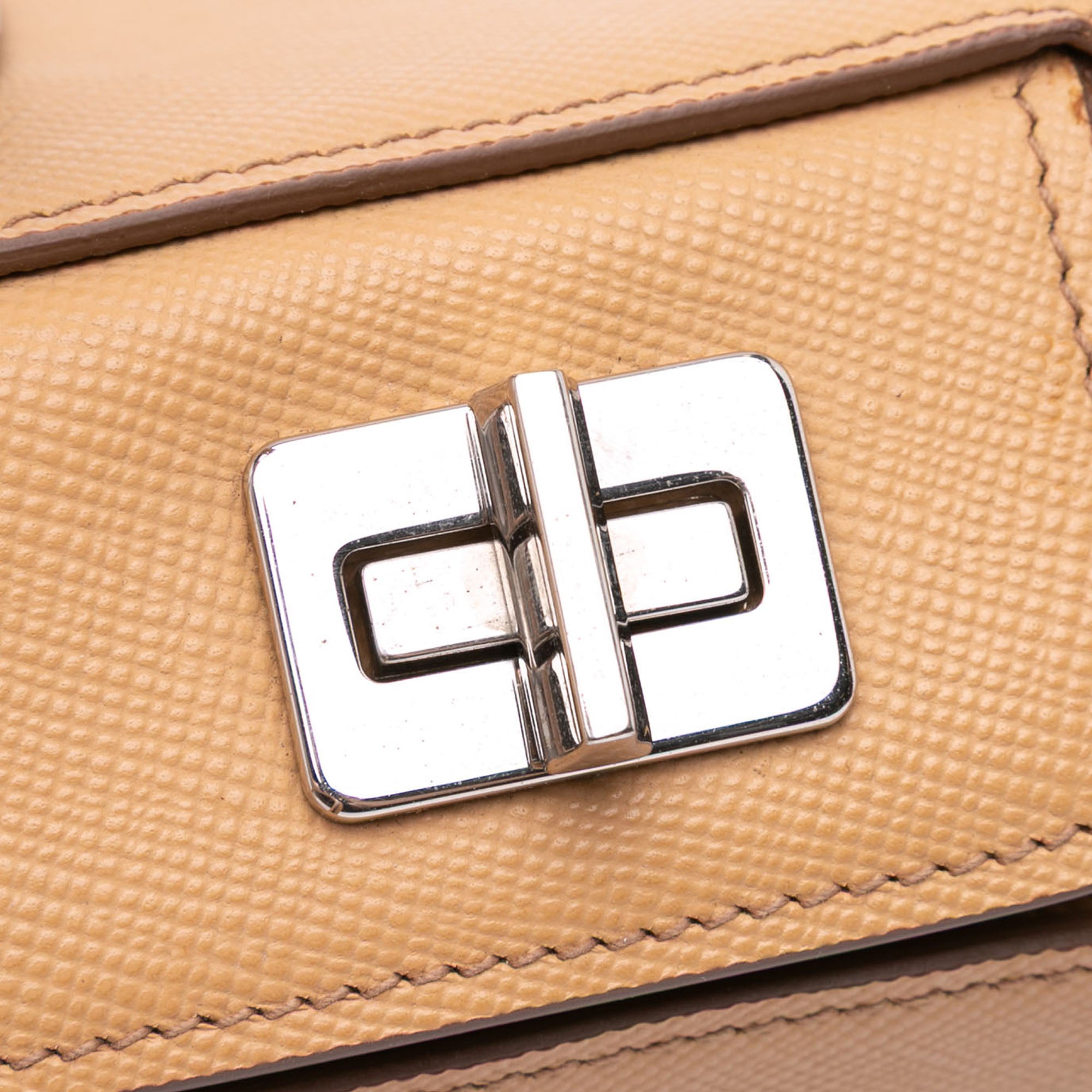 Please note this is a pre-owned item that may display signs of wear consistent with the condition listed above and shown in photos. Designer Revival guarantees this is an authentic Brown Prada Saffiano Cuir Twin Lock Satchel or 100% of your money back. Learn more about our authentication process.