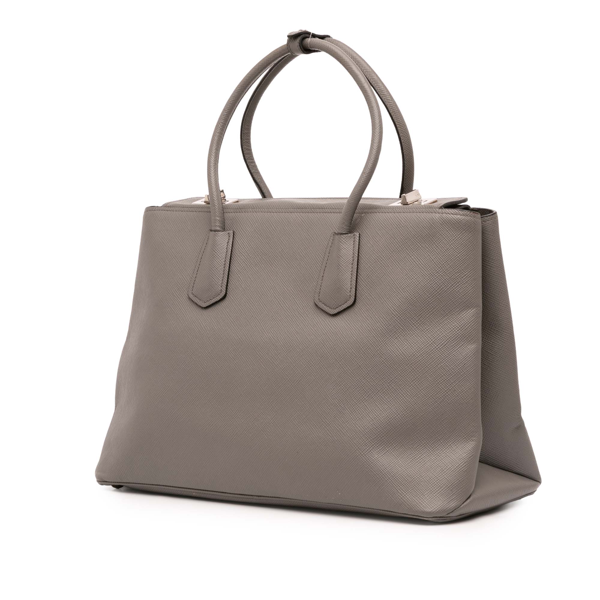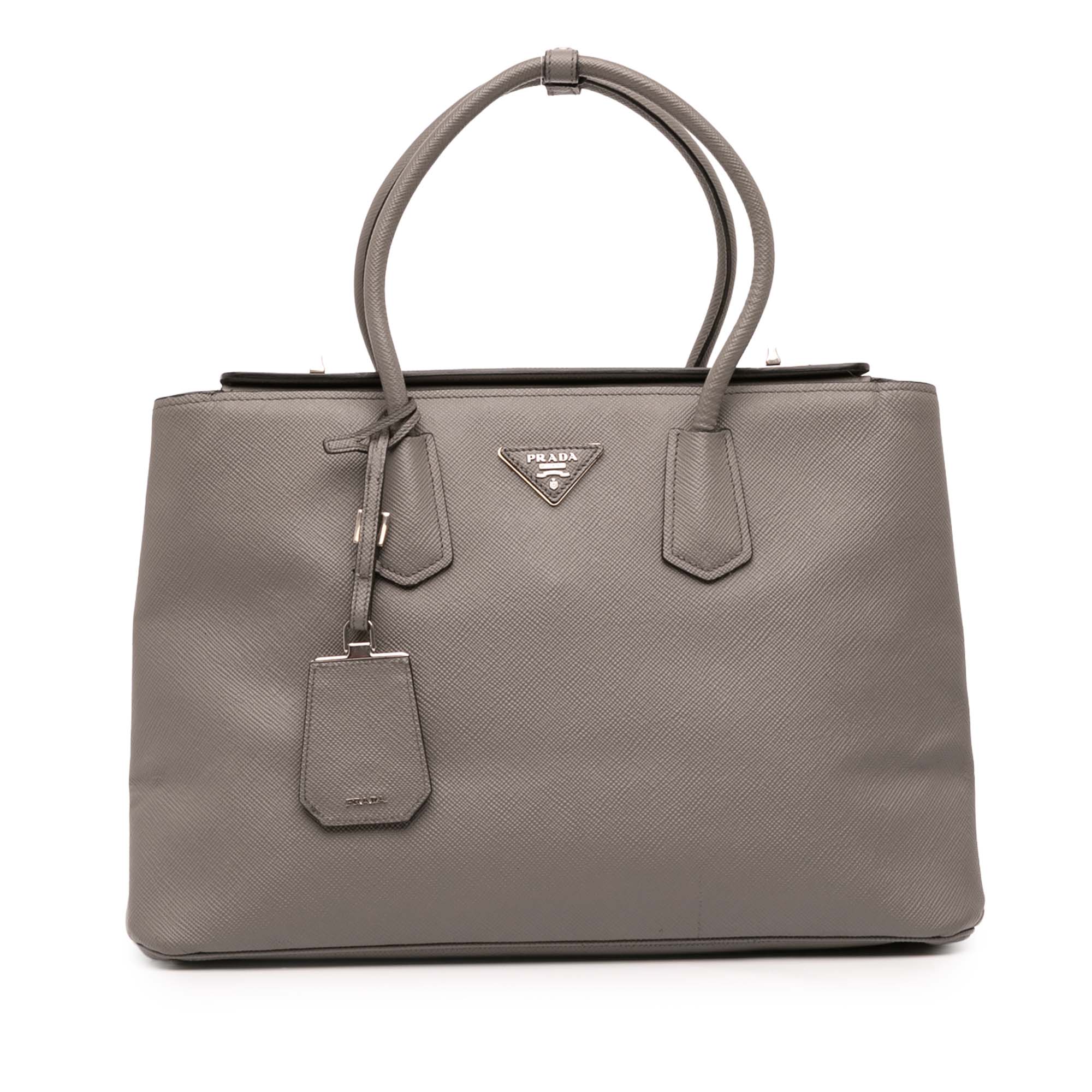 Gray Prada Saffiano Cuir Turnlock Twin Satchel - Designer Revival Gray Prada Saffiano Cuir Turnlock Twin Satchel - Designer Revival
