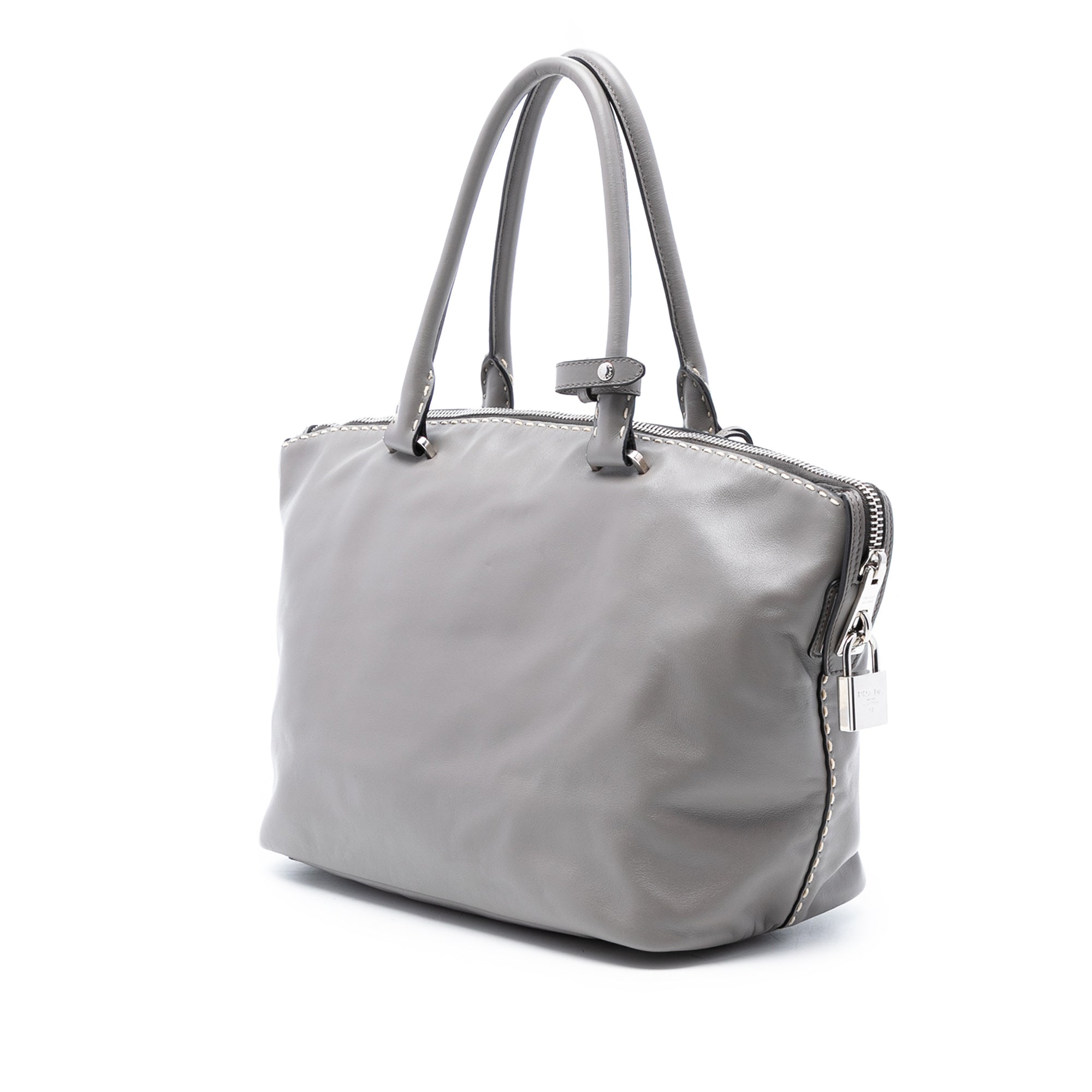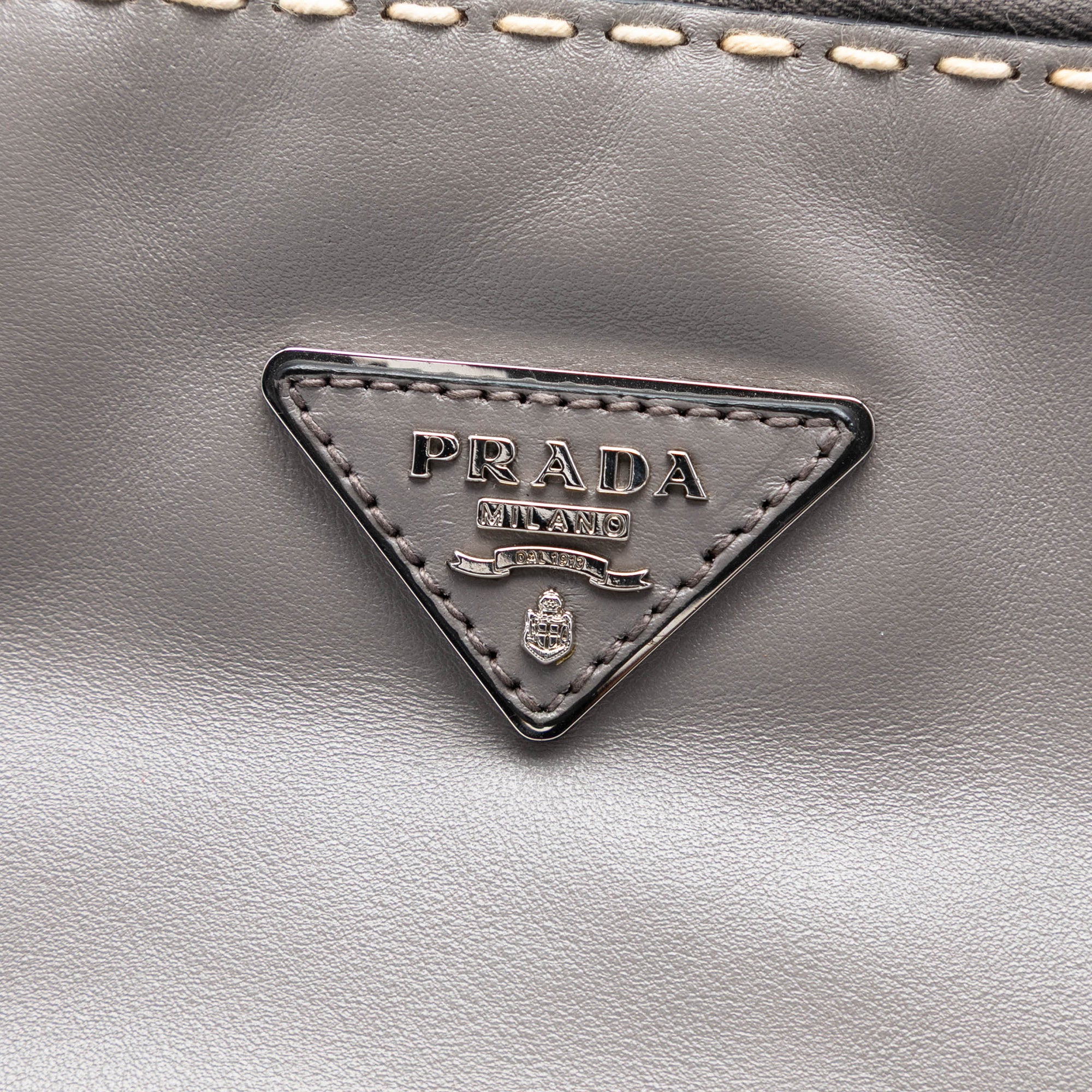 Gray Prada Smooth Calfskin Hand Stitched Double Handle Satchel