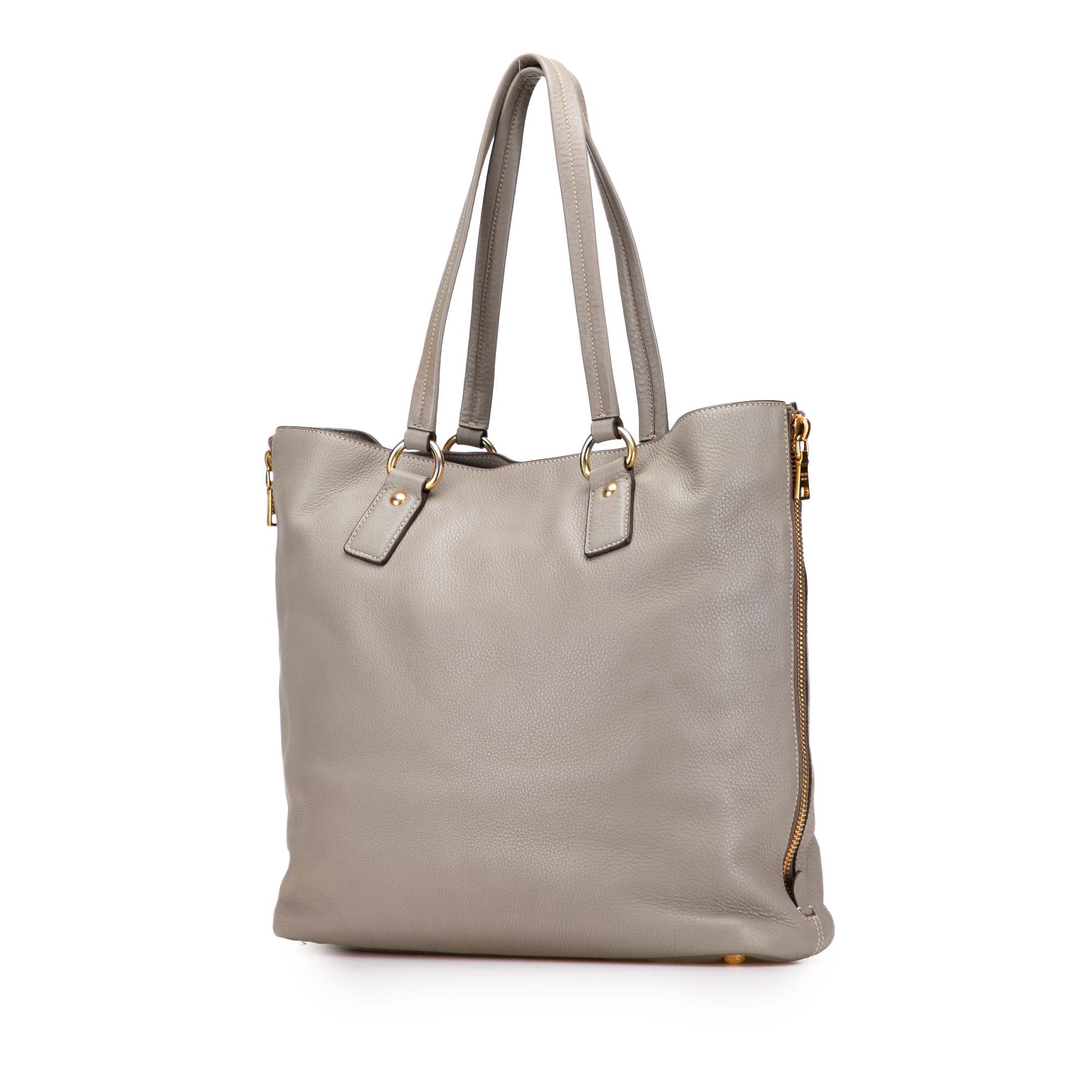 Gray Prada Vitello Daino Side Zip Shopper Tote